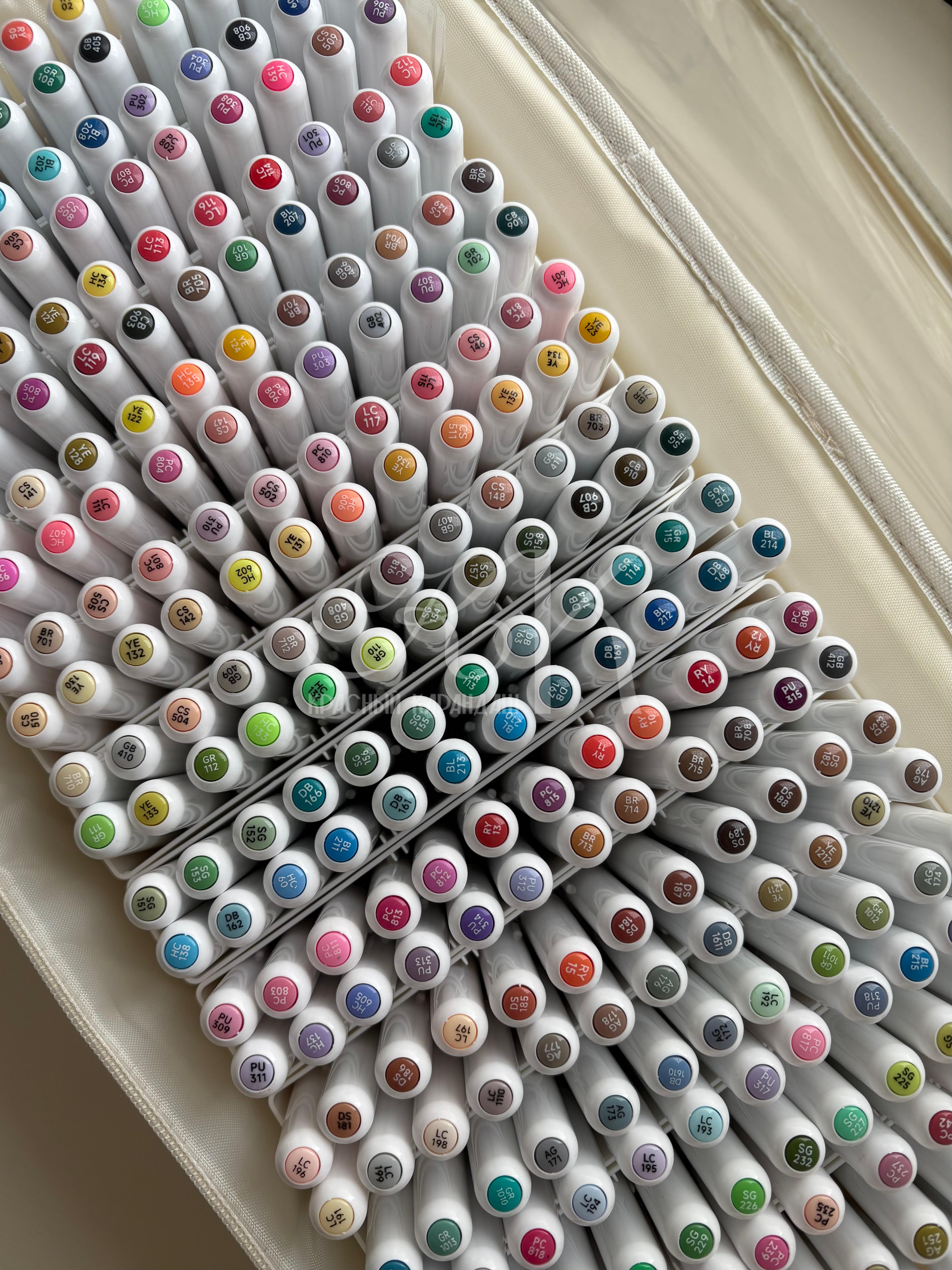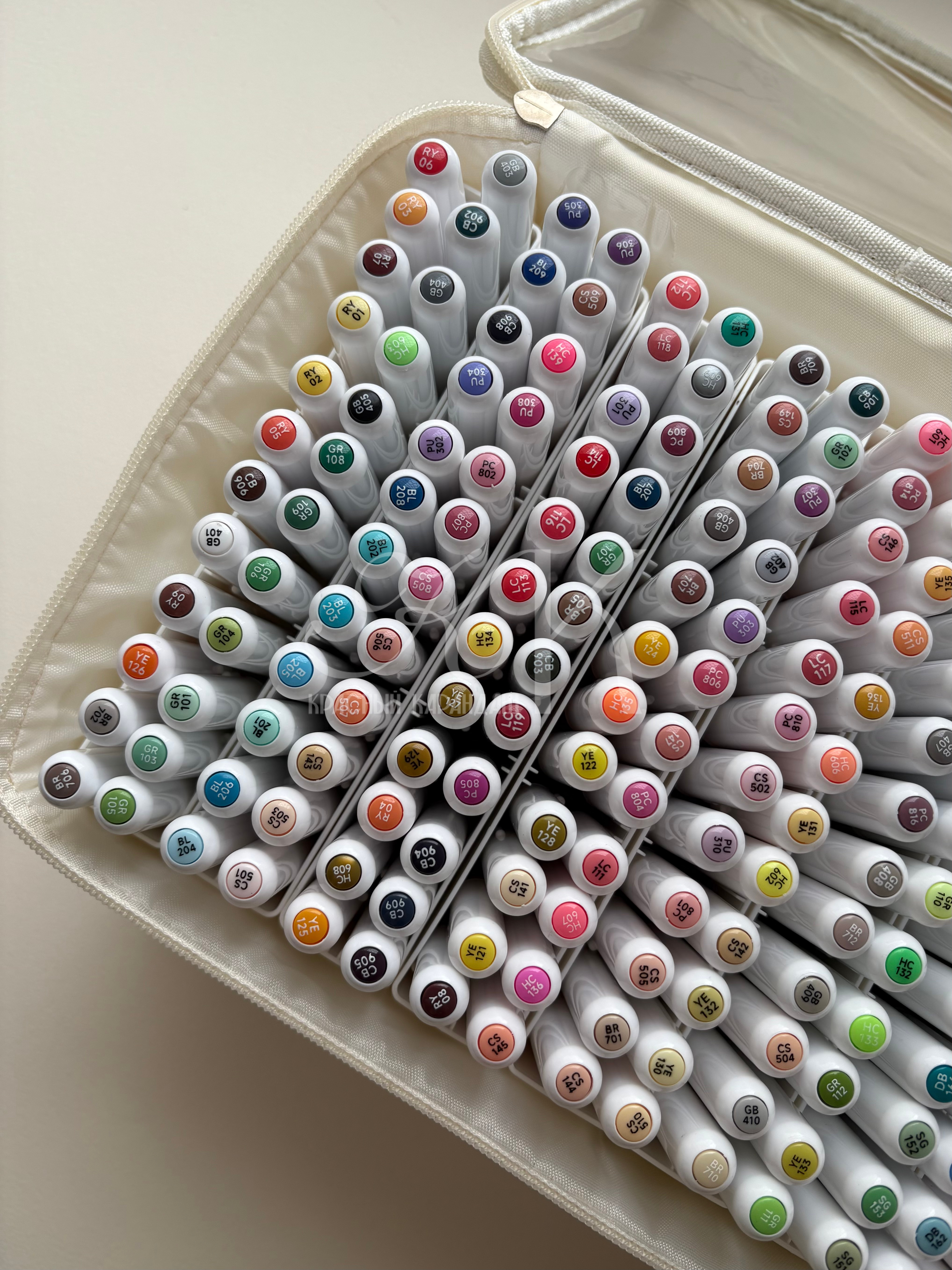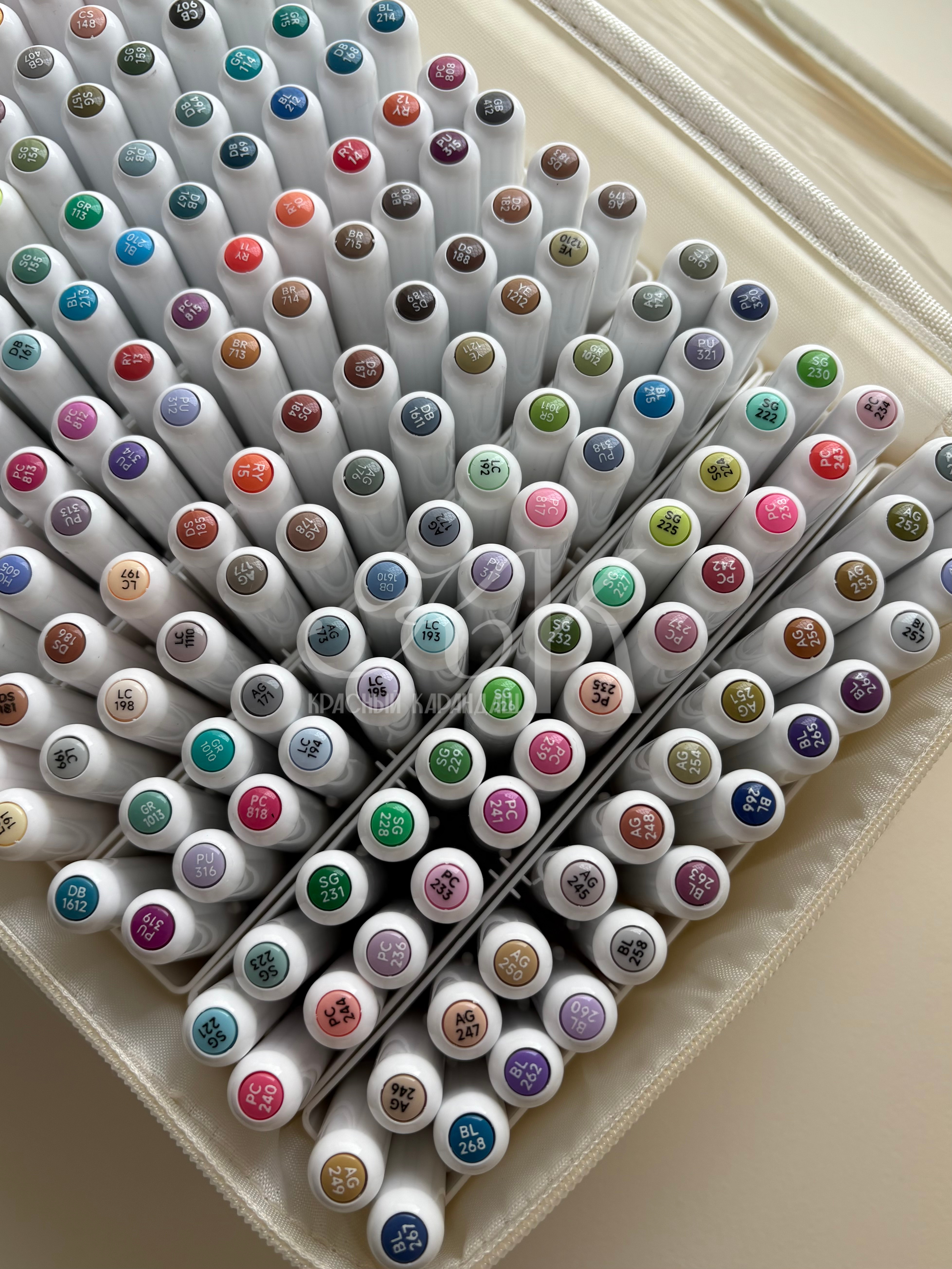 В наборе 288 акриловых маркеров на водной основе. Подходит для письма, рисования, декорирования. Можно использовать на любых поверхностях: холстах, бумаге, дереве, металле, картоне. Маркеры имеют высокую укрывистость с равномерным красочным слоем. После высыхания образуют плотную несмываемую плёнку. Наконечник-кисть обеспечивает линию шириной 1-3 мм.