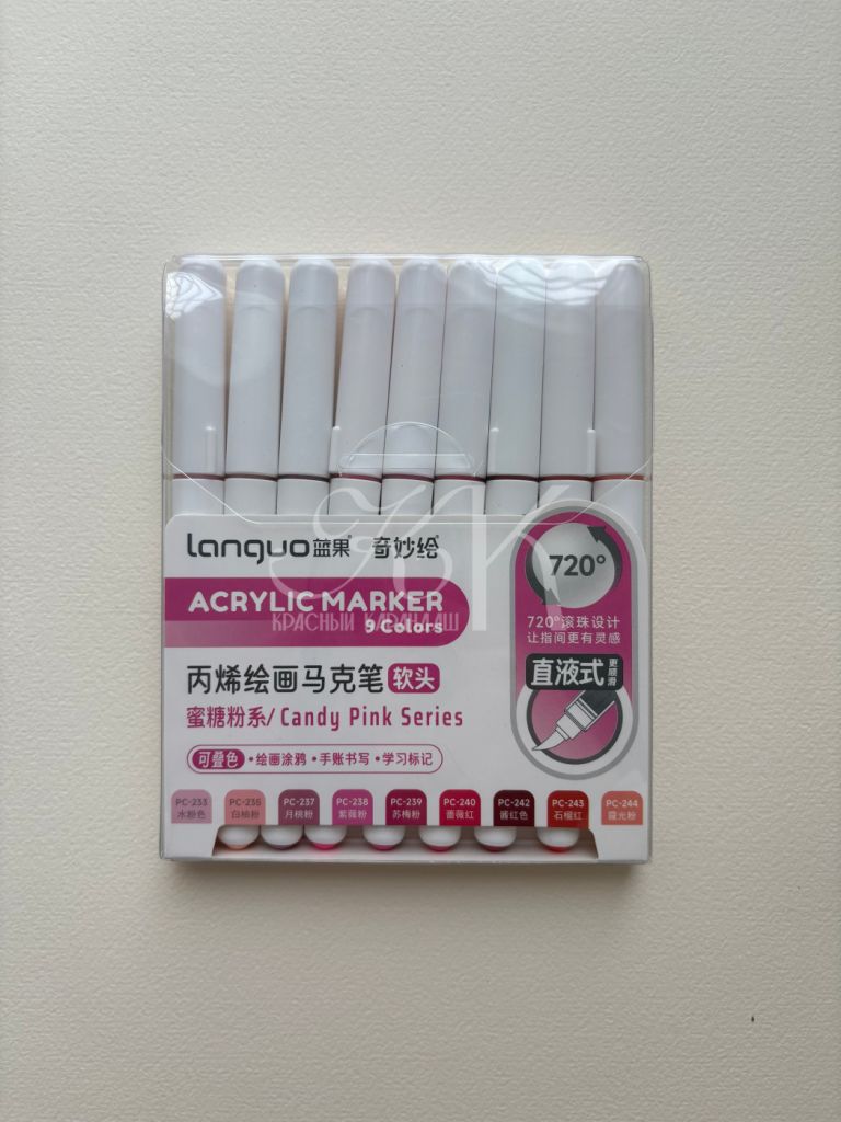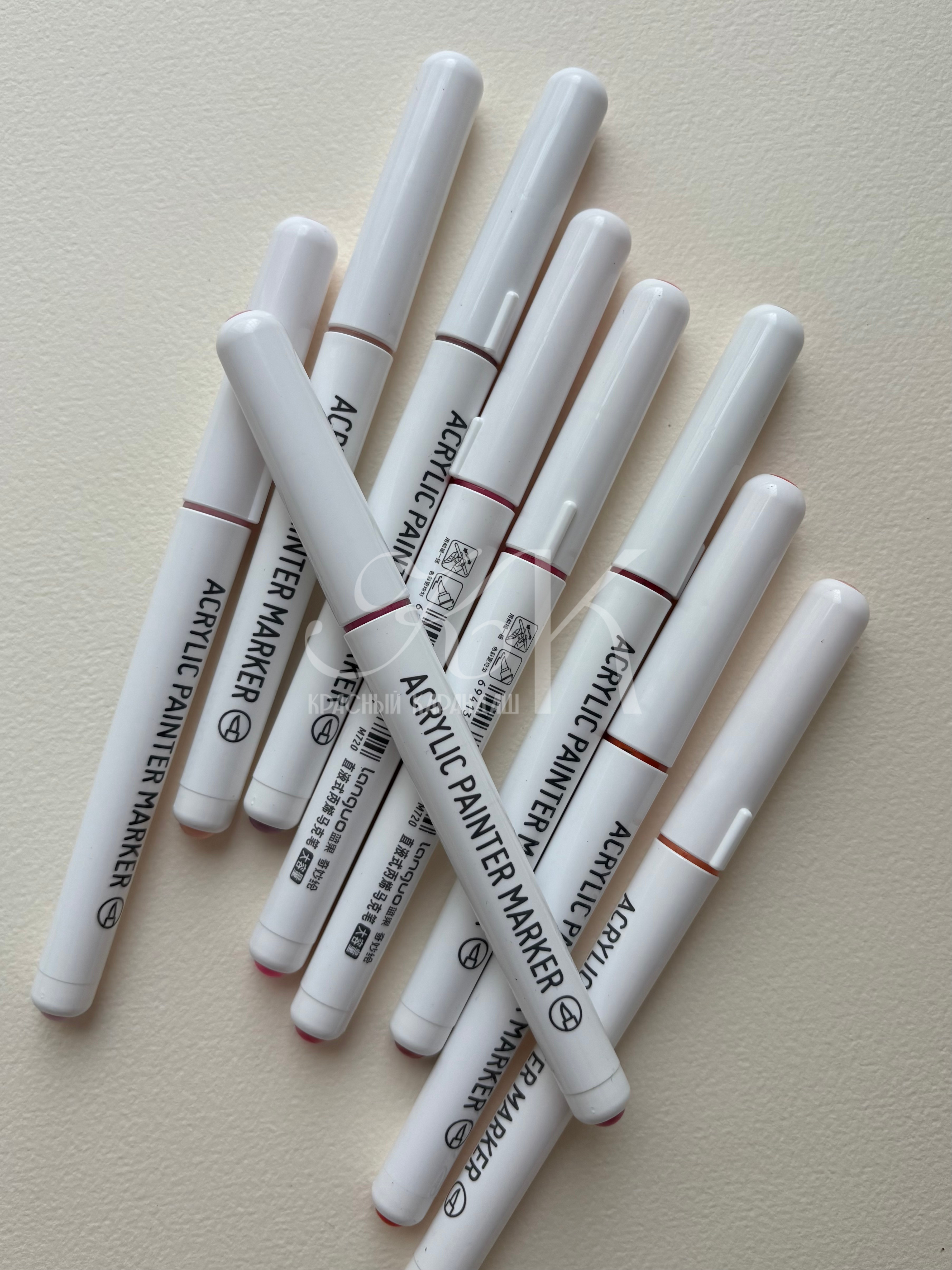 Акриловые маркеры на водной основе. Подходит для письма, рисования, декорирования. Можно использовать на любых поверхностях: холстах, бумаге, дереве, металле, картоне. Маркеры имеют высокую укрывистость с равномерным красочным слоем. После высыхания образуют плотную несмываемую плёнку. Наконечник-кисть обеспечивает линию шириной 1-3 мм.