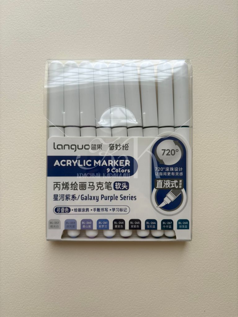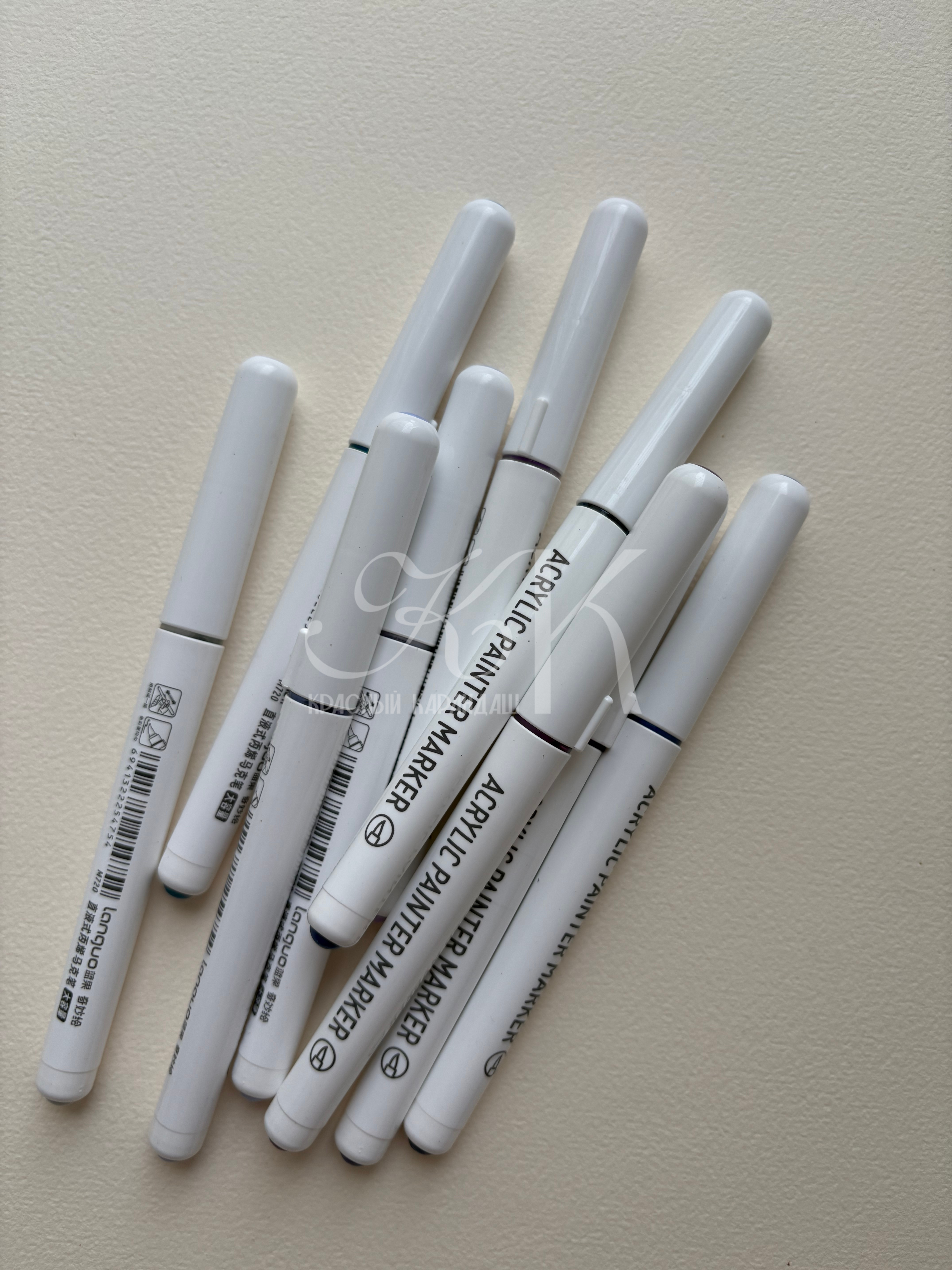 Акриловые маркеры на водной основе. Подходит для письма, рисования, декорирования. Можно использовать на любых поверхностях: холстах, бумаге, дереве, металле, картоне. Маркеры имеют высокую укрывистость с равномерным красочным слоем. После высыхания образуют плотную несмываемую плёнку. Наконечник-кисть обеспечивает линию шириной 1-3 мм.