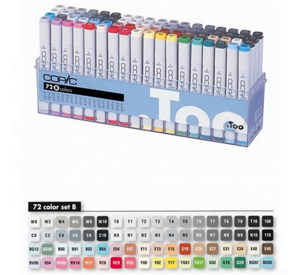 «COPIC» («Копик») – это известный производитель высококачественных инструментов для рисования, входящий в состав японской компании «Too Corporation» («Ту Корпорейшн»). Компания основана в 1987 году. С 1993 года она становится общепризнанным производителем маркеров, которые используются профессионалами во всем мире. Маркеры «COPIC» прекрасно подходят для иллюстраторов, дизайнеров, художников, а также для других творческих людей. Ими можно создавать рисунки, наброски и другие художественные работы. Краска в маркерах имеет срок годности до 3-х лет и обладает высочайшим качеством. Цветовая палитра «COPIC» является специальной психологически построенной цветовой системой, позволяющей пользователям интуитивно выбрать правильные цвета. Маркеры «COPIC» - имеют наконечники на обоих концах. Один наконечник служит для создания рисунка, тонких линий и прорисовки деталей. С другой стороны маркер обладает широким срезанным наконечником, который используют для закрашивания больших поверхностей и для создания широких линий. Маркеры предназначены для работы на бумаге и картоне. Они заправлены чернилами, которые изготавливаются на основе этанола и красителя. Цвета маркеров полупрозрачные, с ними легко работать в лессировочных техниках, они хорошо накладываются друг на друга и смешиваются между собой. Благодаря свойствам чернил и при помощи маркера-блендера в работе с «COPIC» можно создавать плавные переходы из одного цвета в другой. Маркеры «COPIC» представлены широкой палитрой из 214 цветов. К ним выпускаются сменные наконечники и картриджи с чернилами для перезаправки маркеров.