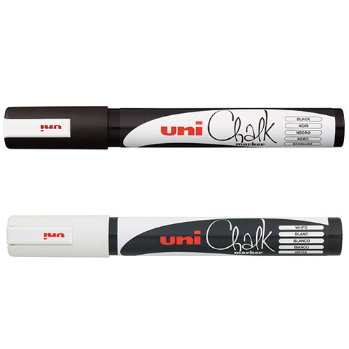Меловой маркер Uni Chalk 5M (Юни Чак) с овальным наконечником, позволяет создавать линию от 1,8 до 2,5 мм. Основу красящего состава меловых маркеров Uni Chalk составляет специальный мел и полиакрилаты. Жидкая консистенция позволяет легко наносить меловую краску практически на любые гладкие поверхности: металл, пластик, стекло, камень и фарфор. После высыхания маркер легко стирается мокрой тряпкой, но в то же время защищен от воздействия влаги и осадков. Меловые маркеры Uni Chalk благодаря своему удобству и практичности могут применятся в различных сферах для всевозможных работ: в школе - для рисования на доске, в барах и кафе - для подписи ценников, создания вывесок и рекламы, на различных производствах - могут быть применены для маркировки деталей, в дизайне - для создания декора и поделок. По своей сути, Uni Chalk это тот же разноцветный мелок только в более удобной форме, которая не пачкает руки. Перед началом использования мелового маркера Uni Chalk для начала его нужно хорошенько встряхнуть, затем снимите защитный колпачок и можно приступать к работе. Если кончик маркера сухой, то необходимо взять черновик, перевернуть маркер наконечником вниз и в вертикальном положении несколько раз нажать на наконечник, утопив его в корпус маркера. Таким образом мы подкачиваем красящий состав. Как только наконечник пропитается, можно приступать к использованию мелового маркера. Единственным требованием меловых маркеров является использование на сухих и гладких поверхностях.