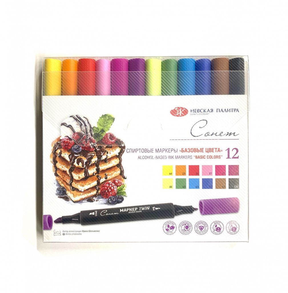 О серии: спиртовые маркеры "Сонет" предназначены для всех видов скетчинга, а так же комиксов, иллюстраций и других творческих направлений. Два наконечника - пуля и долото делают маркеры универсальными для любой работы. Наконечник пуля подходит для тонких линий и точной детализации, долото — для быстрой визуализации и заполнения больших фрагментов. Полная палитра спиртовых маркеров "Сонет" включает 110 цветов, в том числе блендер. Все цвета полупрозрачные, отлично подходят для лессировок и создания плавных цветовых переходов. Маркеры поставляются поштучно и в наборах различной комплектации. Применение: для иллюстрации, скетчинга и графических работ в смешанных техниках. Производство: производится в Китае под строгим контролем качества.