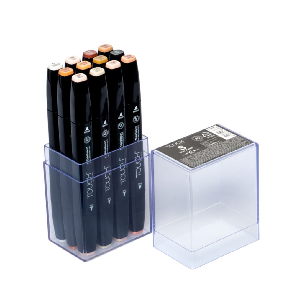 Двухсторонние маркеры для скетчинга Touch Twin от корейского бренда ShinHan Art разработаны для широкого спектра задач: от детальной проработки изображения до масштабных цветовых заливок. За счет своей универсальности маркеры серий Touch Twin очень востребованы в профессиональной арт-среде — дизайнерами, художниками-мультипликаторами, иллюстраторами и архитекторами. Чернила прекрасно ложатся на любую поверхность. Они не размазываются, бескислотны, нетоксичны, быстро сохнут и почти не имеют запаха. МаркерыTouch Twin перезаправлемые. Маркер нуждается в перезаправке, если вы заметили, что наконечник высох, цвета начали плохо смешиваться или линия стала неравномерной. Touch Twin в стильном чёрном корпусе имеет узкое перо (перо-пуля) и широкое долото, поэтому маркеры этой серии подходят для любого вида скетчинга. Тип пера обозначен на корпусе с обеих сторон. Наконечники маркеров Touch изготовлены из качественного материала и долго сохраняют форму. После износа пишущий узел можно легко заменить на новый. Цвета в наборе: Розовый средний (RP137), Розовая пудра (YR27), Бежевый тусклый (YR29), Белый молочный (YR132), Персиковый пастельный (YR26), Розовый телесный нежный (YR133), Розовый румянец (R136), Оранжевый светлый (R140), Розовый телесный (R139), Розовый фруктовый (R28), Розовый вишневый бледный (R135), Белый телесный (R131).