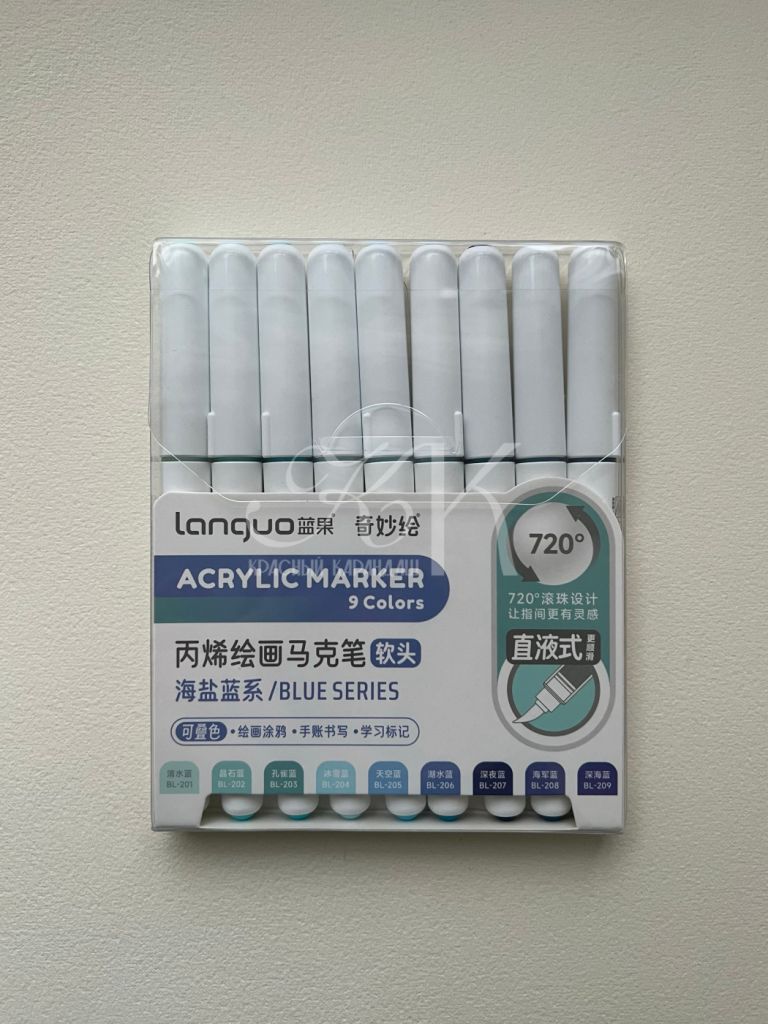 Акриловые маркеры на водной основе. Подходит для письма, рисования, декорирования. Можно использовать на любых поверхностях: холстах, бумаге, дереве, металле, картоне. Маркеры имеют высокую укрывистость с равномерным красочным слоем. После высыхания образуют плотную несмываемую плёнку. Наконечник-кисть обеспечивает линию шириной 1-3 мм.