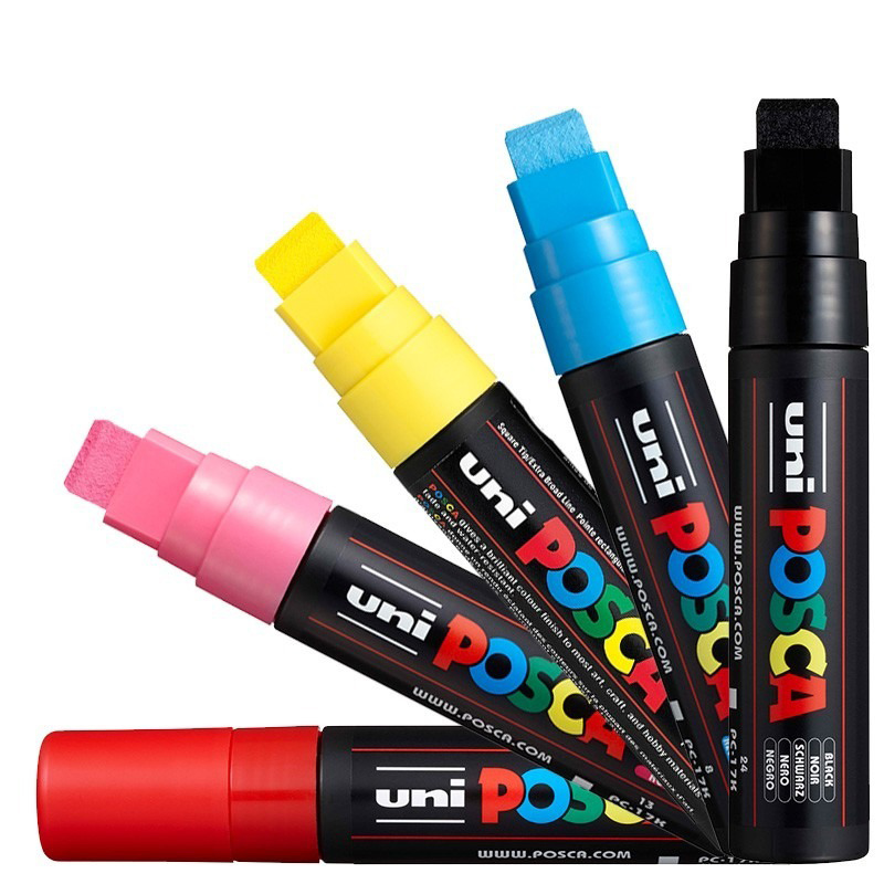 О серии: художественные маркеры от японского производителя Uni Mitsubishi Pencil предназначены для различных видов изобразительного искусства, от художественных работ и стрит-арта до детского творчества. представлены маркеры с 8 видами толщины и 5 видами различных форм наконечника, благодаря чему спектр их применения практически безграничен. Маркер PC-17K - самый толстый наконечник в линейке POSCA. Плоская форма в виде "долото" оставляет на любых поверхностях линию толщиной до 15,0 мм. Незаменим для крупных и масштабных творческих проектов! В линейке 10 ярких цветов. Характеристики: чернила маркеров состоят из воды, пигмента и титановых белил, благодаря чему все цвета обладают чрезвычайной укрывистостью на любых поверхностях, цвета могут накладываться поверх друг друга. При использовании маркеров на бумаге, чернила не проступают на обратную сторону листа. По экологическим качествам титановые чернила являются безопасными, маркеры не содержат ксилен, соответствуют стандарту ISO8124-3 и безопасны для детского творчества. Маркеры POSCA позволяют работать на любой поверхности. На пористые основы, такие как камень, древесина, холст некоторые металлы и пластмассы маркеры можно наносить без использования каких-либо закрепителей, для 100% фиксации на исключительно гладких поверхностях можно использовать бесцветный лак. Без использования фиксаторов могут применяться в качестве временного декора. Эффекты: Размывание водой До того как чернила высохнут, возьмите кисть предварительно замоченную в воде, и наносите краску непосредственно на материал до достижения желаемого эффекта. Смешивание цветов После нанесения, Вы можете смешивать цвета между собой, создавать градиенты и получать новые оттенки. Делать это можно при помощи наконечника, кистью или кусочком ткани. Наложение цветов Краска POSCA обладает высокой плотностью покрытия и поэтому идеально подходит для наложения слоев. После высыхания надписи можно перекрывать новым цветом. Распыление / брызги Для получения эффекта «распыления/брызг» нужно пропитать наконечник чернилами, затем, держа маркер параллельно рабочей поверхности подуть (осторожно!) на его наконечник. Рекомендуем потренироваться на черновике перед применением. Данная техника идеально подходит для работы маркерами с широкими наконечниками: PC-5M, PC-7M, PC-8K и PC-17K. Применение: маркеры предназначены для различных направлений творчества — стрит-арт, иллюстрация, живопись, архитектура, дизайн, прикладное искуствоо и оформительские работы. Перед началом работы маркер необходимо встряхнуть для смешивания и равномерной подачи чернил. Производство: линейка маркеров POSCA создана брендом Uni Mitsubishi Pencil в Токио, основанным в 1886 году. Изначально бренд специализировался на производстве цветных карандашей. После столетних инноваций и в разработке пишущих инструментов Uni Mitsubishi Pencil создёт линейку маркеров POSCA, состав и уникальные качества которых остаётся неизменным по сей день.