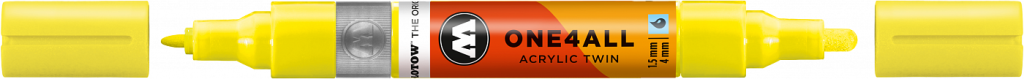 Двусторонний маркер от Molotow 227Hs-Co совмещает в себе два маркера: 100 серии - 1.5 мм и 200 серии - 4мм Маркер многоразового использования, перезаправляемый. Перья сменные. Помповая система регулирует подачу краски к перу предотвращая подтеки. На водорастворимой акриловой краске, все цвета смешиваются между собой. Маркер универсальный, используется практически по любой поверхности. Для наилучшего держания на сложных поверхностях добавьте 1-2% ацетона в маркер. Перед использованием хорошо встряхнуть. Характеристики: - толщина пера 4 мм; - толщина пера 1,5 мм; - сменное перо; - матовый; - высокая пигментация; - акриловая основа. Производится немецкой компанией MOLOTOW («Молотов»), которая была основана в 1996 году. MOLOTOW является первооткрывателем в своей области и общепризнанной международной торговой маркой. Профессиональные химики работают над разработкой будущих продуктов компании, которая давно стала синонимом воплощения гениальных идей и получила всемирную известность и самые лучшие рекомендации на мировом художественном рынке. Компания стремится развивать производство, учитывая потребности художников и специалистов в других областях, а также гарантирует превосходное качество своей продукции.