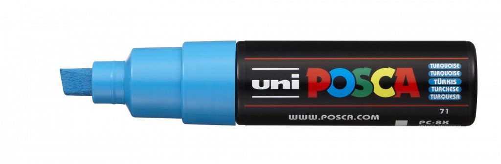О серии: художественные маркеры от японского производителя Uni Mitsubishi Pencil предназначены для различных видов изобразительного искусства, от художественных работ и стрит-арта до детского творчества. представлены маркеры с 8 видами толщины и 5 видами различных форм наконечника, благодаря чему спектр их применения практически безграничен. Маркер PC-8K - выбор любителей стрит-арта. Скошенный наконечник позволяет работать на больших объемах поверхностей как в помещении, так и на открытом воздухе. Толщина линии до 8,0 мм. В линейке 35 цветов. Характеристики: чернила маркеров состоят из воды, пигмента и титановых белил, благодаря чему все цвета обладают чрезвычайной укрывистостью на любых поверхностях, цвета могут накладываться поверх друг друга. При использовании маркеров на бумаге, чернила не проступают на обратную сторону листа. По экологическим качествам титановые чернила являются безопасными, маркеры не содержат ксилен, соответствуют стандарту ISO8124-3 и безопасны для детского творчества. Маркеры POSCA позволяют работать на любой поверхности. На пористые основы, такие как камень, древесина, холст некоторые металлы и пластмассы маркеры можно наносить без использования каких-либо закрепителей, для 100% фиксации на исключительно гладких поверхностях можно использовать бесцветный лак. Без использования фиксаторов могут применяться в качестве временного декора. Эффекты: Размывание водой До того как чернила высохнут, возьмите кисть предварительно замоченную в воде, и наносите краску непосредственно на материал до достижения желаемого эффекта. Смешивание цветов После нанесения, Вы можете смешивать цвета между собой, создавать градиенты и получать новые оттенки. Делать это можно при помощи наконечника, кистью или кусочком ткани. Наложение цветов Краска POSCA обладает высокой плотностью покрытия и поэтому идеально подходит для наложения слоев. После высыхания надписи можно перекрывать новым цветом. Распыление / брызги Для получения эффекта «распыления/брызг» нужно пропитать наконечник чернилами, затем, держа маркер параллельно рабочей поверхности подуть (осторожно!) на его наконечник. Рекомендуем потренироваться на черновике перед применением. Данная техника идеально подходит для работы маркерами с широкими наконечниками: PC-5M, PC-7M, PC-8K и PC-17K. Применение: маркеры предназначены для различных направлений творчества — стрит-арт, иллюстрация, живопись, архитектура, дизайн, прикладное искуствоо и оформительские работы. Перед началом работы маркер необходимо встряхнуть для смешивания и равномерной подачи чернил. Производство: линейка маркеров POSCA создана брендом Uni Mitsubishi Pencil в Токио, основанным в 1886 году. Изначально бренд специализировался на производстве цветных карандашей. После столетних инноваций и в разработке пишущих инструментов Uni Mitsubishi Pencil создёт линейку маркеров POSCA, состав и уникальные качества которых остаётся неизменным по сей день.