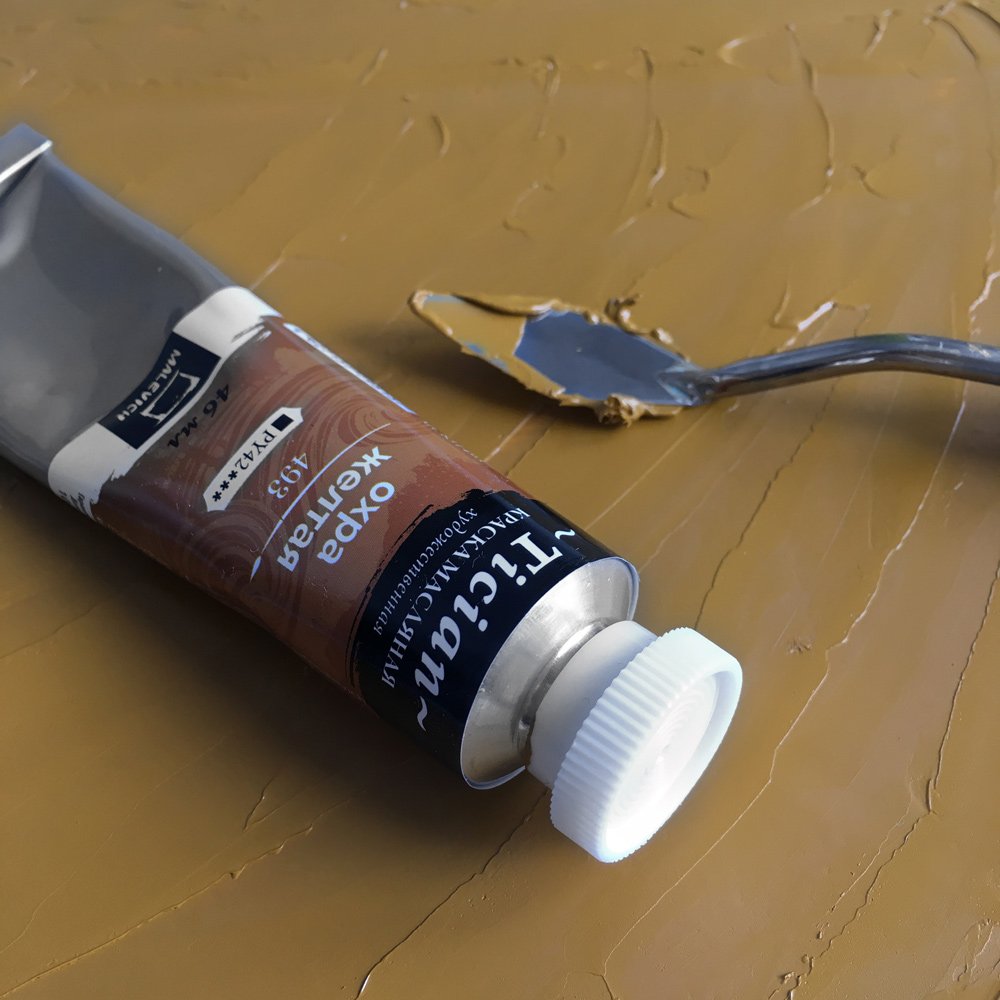 Масляные краски "Tician" от бренда Малевичъ изготавливаются из высококачественных, светостойких пигментов и натурального, очищенного льняного масла. Отлично ложатся на холст, имеют яркие, насыщенные цвета, которые удовлетворят как сторонников классической живописи, так и любителей авангарда, В производстве используются только экологически чистые и безопасные материалы. Содержание пигмента и масла сбалансировано таким образом, чтобы получить идеальную мягкую консистенцию, позволяющую писать даже неразбавленными красками. Тончайший перетир пигмента дает возможность идеально смешивать цвета красок, а также работать методом лессировок, добиваясь акварельного эффекта. Полная палитра серии представлена 44 цветами, поставляется в тубах объемом 46 мл.