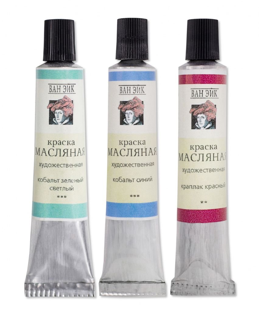 Масляные краски «Ван Эйк» приготовлены на основе очищенного полимеризованного льняного масла с добавлением пигмента тонкого помола. Высокое содержание пигмента 1:1,1:2 придаёт краске превосходные укрывистые свойства. Связующее имеет особые свойства, придающие краске пластичность и управляемую текучесть. Краска обладает прекрасными оптическими свойствами. Не содержит искусственных добавок, красителей и загустителей. Состав: модифицированное льняное масло, пигмент, функциональные добавки.