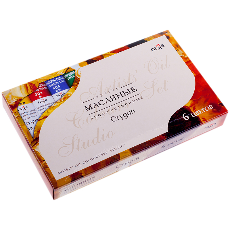 Масло «Студия» изготавливается на основе натуральных масел высокой степени очистки. В серии красок использован широкий спектр и-имитации. Краски обладают уникальной яркостью и сочностью цвета. Предназначены для живописи маслом, росписи по дереву, металлу и других художественных работ. Масло «Студия» подходит как начинающим художникам-любителям, которые смогут творить, выбрав для себя базовые цвета, так и профессионалам, которым важен выбор оттенков. Масло «Студия» представлено широкой палитрой, состоящей из более 60-ти различных оттенков в тубах по 46 миллилитров. Также масло доступно в различных наборах. Масло «Студия» выпускается российской компанией «Гамма», которая уже более 100 лет экспериментирует с пигментами, производит художественные краски и другие товары для творчества.