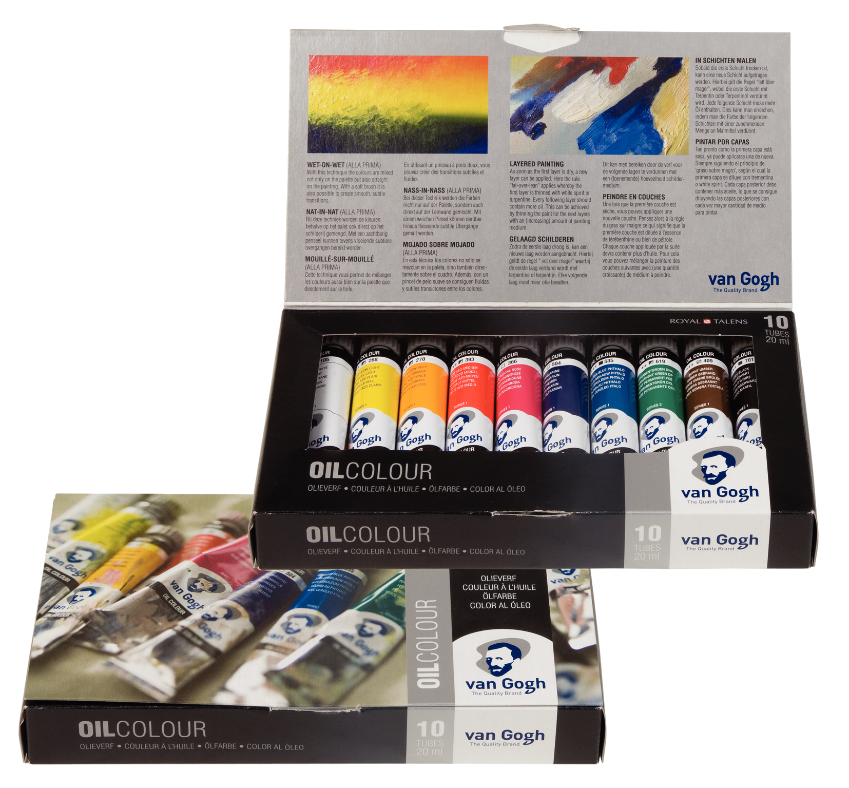 О серии: художественные масляные краски Van Gogh отличаются достаточно высоким содержанием пигмента в сочетании с льняным маслом высокого качества. Масло Van Gogh представлено сбалансированной палитрой из 66 цветов. Краски данной серии представлены поштучно и в наборах различной комплектации. Комплектация набора: в данный набор входит 10 базовых цветов масляной краски Van Gogh в тубах по 20 мл. Набор упакован в картонную коробку. Характеристика: Van Gogh – это художественные масляные краски, изготовленные на льняном масле высшей степени очистки. Обладают достаточно высокой концентрацией пигмента. Серия красок состоит из ярких и насыщенных оттенков. Цвета имеют равную степень плотности и поэтому хорошо смешиваются друг с другом. Благодаря высокой плотности мазки не расплываются и хорошо видны на картине. Масло Van Gogh не выцветает десятилетиями. Производство: масляные краски Van Gogh производятся в городе Апелдорн голландской компанией ROYAL TALENS. Основал её Мартин Таленс (Marten Talens) в 1899 году. Титул «Royal» (Ройал, королевский) компания получила в 1949 году от королевской четы за высокое качество продукции и следование традициям. ROYAL TALENS производит все виды художественных красок и является одним из ведущих производителей в своей отрасли.