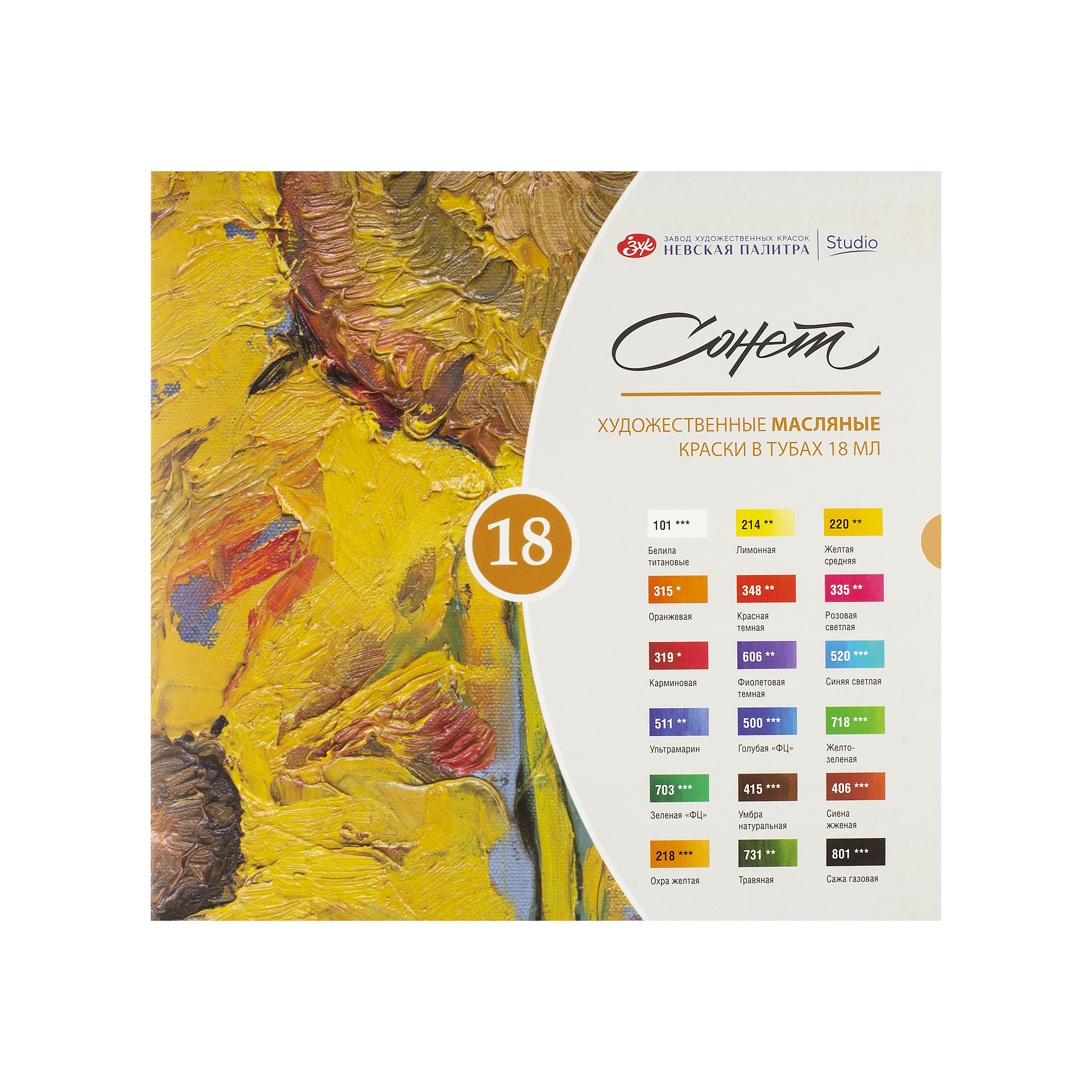 Художественные масляные краски серии «Сонет» разработаны по новейшим технологиям с использованием современных материалов в рецептурах. Выпускаются на синтетических связующих и без применения дорогостоящих пигментов. Предназначены преимущественно для тех, кто учится живописному мастерству. Рекомендуются для выполнения эскизов, набросков, курсовых и дипломных работ. Дорогие неорганические пигменты (кадмиевые и кобальтовые) заменены светостойкими органическими. Процент связующих, добавок и наполнителей в составе увеличен. Сбалансированная палитра включает наиболее популярные в живописи цвета. Масло «Сонет» производится заводом художественных красок Невская палитра, расположенным в городе Санкт-Петербурге. Завод уже более 80 лет выпускает продукцию для профессиональных художников и любителей творчества.