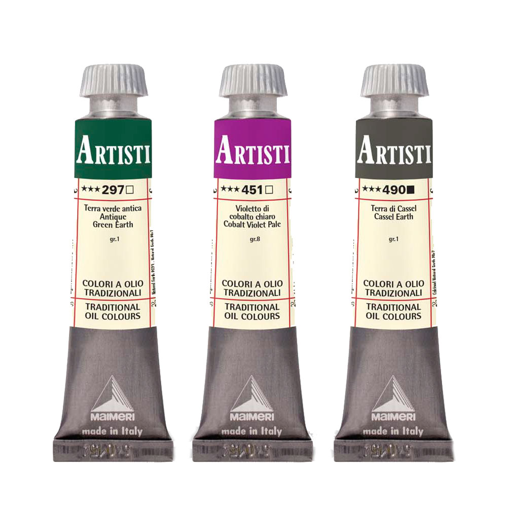 О серии: художественная масляная краска Artisti является сбалансированной по характеристикам компонентов, используемых художниками с учетом особенностей их работы и объединяет лучшие традиции и инновации. Рецептура сохранённая с 1923 года, разработана на опыте мастеров эпохи возрождения. Использование отборных ингредиентов семейным производством, основанных признанным итальянским художником Maimeri. Яркие пигменты обеспечивают исключительную насыщенность цвета и высокую степень светоустойчивости красочного слоя. По результатам тестов, масляные краски Artisti имеют среднюю продолжительность высыхания, характерную для масляной техники. Полная палитра масла серии Artisti состоит из 102 цветов, среди которых 5 тонированных белых и 17 земляных оттенков. Применение: используется для художественных и живописных работ. Производство: изготавливается в Италии компанией Maimeri, одной из ведущих по производству художественных товаров. Компанию основал Джанни М?ймери, и она работает на художественном рынке с начала XX века.