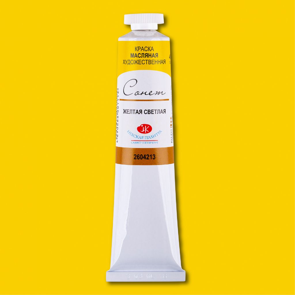 Художественные масляные краски серии «Сонет» разработаны по новейшим технологиям с использованием современных материалов в рецептурах. Выпускаются на синтетических связующих и без применения дорогостоящих пигментов. Предназначены преимущественно для тех, кто учится живописному мастерству. Рекомендуются для выполнения эскизов, набросков, курсовых и дипломных работ. Дорогие неорганические пигменты (кадмиевые и кобальтовые) заменены светостойкими органическими. Процент связующих, добавок и наполнителей в составе увеличен. Сбалансированная палитра включает наиболее популярные в живописи цвета. Масло «Сонет» производится заводом художественных красок Невская палитра, расположенным в городе Санкт-Петербурге. Завод уже более 80 лет выпускает продукцию для профессиональных художников и любителей творчества.