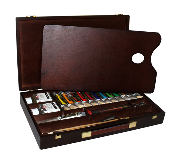 О серии: масляные краски «Rembrandt» - краски высочайшего качества, при производстве этих красок совместили традиции прошлого с инновационными технологиями. В составе краски не содержится наполнителей. Для профессионального использования. Серия представлена палитрой из 120 цветов поштучно в тубах по 40 и 150 миллилитров и в наборах различной комплектации. Производство: производится в городе Апелдорн голландской компанией «ROYAL TALENS», которую основал. Мартин Таленс (Marten Talens) в 1899 году. «ROYAL TALENS» производит все виды художественных красок и является одним из ведущих производителей в своей отрасли. Характеристика: укрывистая краска, оптимальна для профессионального использования. Большинство цветов серии обладает высшей светостойкостью. Гарантия сохранения цвета у большинства оттенков – 100 лет. В обширной палитре выдержан баланс укрывистых и прозрачных (лессировочных) оттенков. Применение: используется для художественных и живописных работ. Комплектация: в наборе 12 туб по 40мл, мастихин, медиум для масла,3 кисти, уголь,1 туба 60 миллилитров, уайт-спирит, маслёнка, палитра. Набор упакован в деревянный короб.