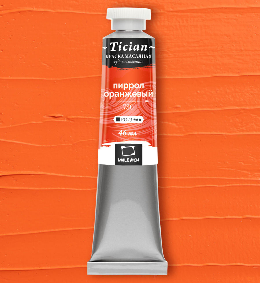Масляные краски "Tician" от бренда Малевичъ изготавливаются из высококачественных, светостойких пигментов и натурального, очищенного льняного масла. Отлично ложатся на холст, имеют яркие, насыщенные цвета, которые удовлетворят как сторонников классической живописи, так и любителей авангарда, В производстве используются только экологически чистые и безопасные материалы. Содержание пигмента и масла сбалансировано таким образом, чтобы получить идеальную мягкую консистенцию, позволяющую писать даже неразбавленными красками. Тончайший перетир пигмента дает возможность идеально смешивать цвета красок, а также работать методом лессировок, добиваясь акварельного эффекта. Полная палитра серии представлена 44 цветами, поставляется в тубах объемом 46 мл.
