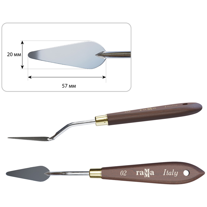 Мастихины серии «Старый Мастер» изготовлены вручную в Италии. Лезвие из нержавеющей стали прочное и упругое. Лезвие имеет специальное глянцевое покрытие для долговечной службы. Эргономичная ручка из натурального бука отполирована вручную и оснащена отверстием для хранения на подвесе. Бесшовная обойма гарантирует надежное соединение лезвия и ручки. Коллекция мастихинов представлена в 12 самых популярных видах лезвий: ромб, капля, «рыбка», овальное, прямоугольные.