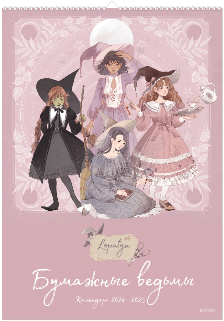 Бумажные ведьмы Loputyn. Календарь 2024–2025 (обложка розовая)
