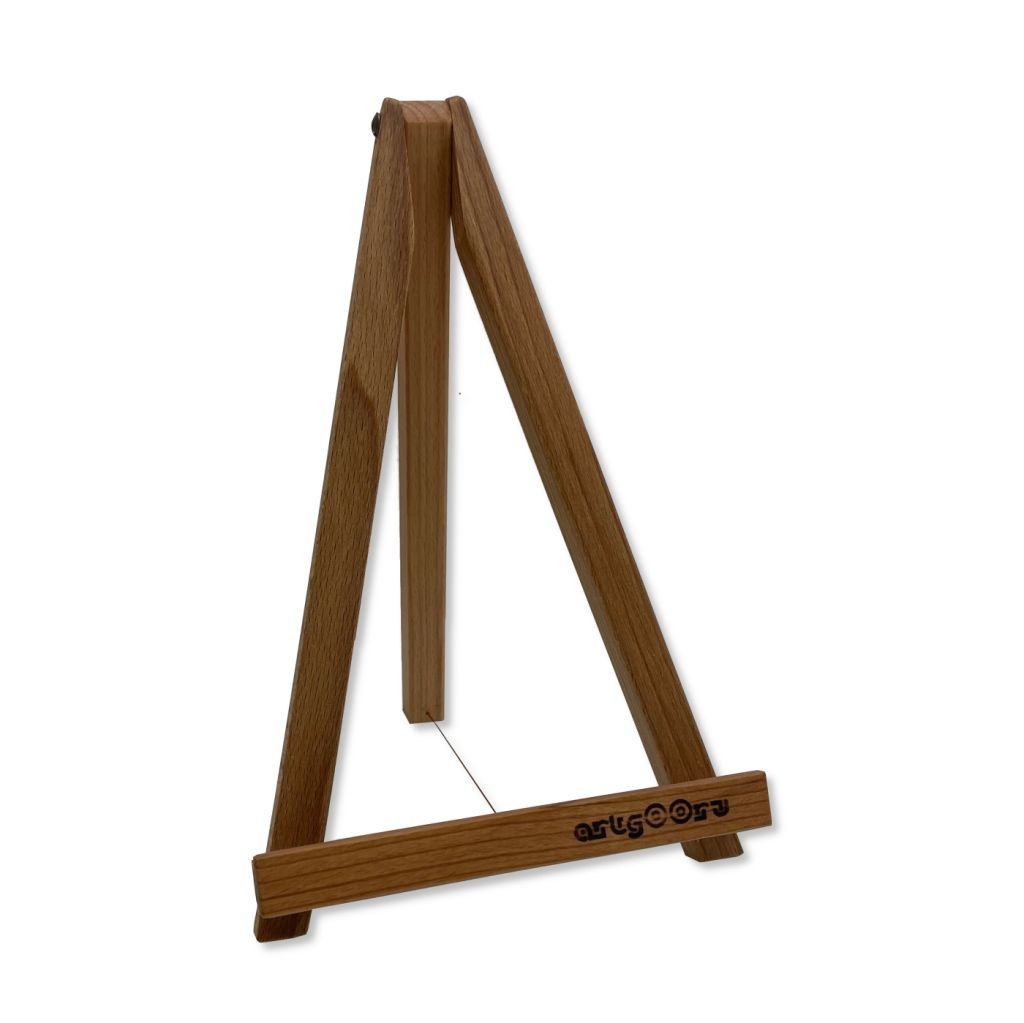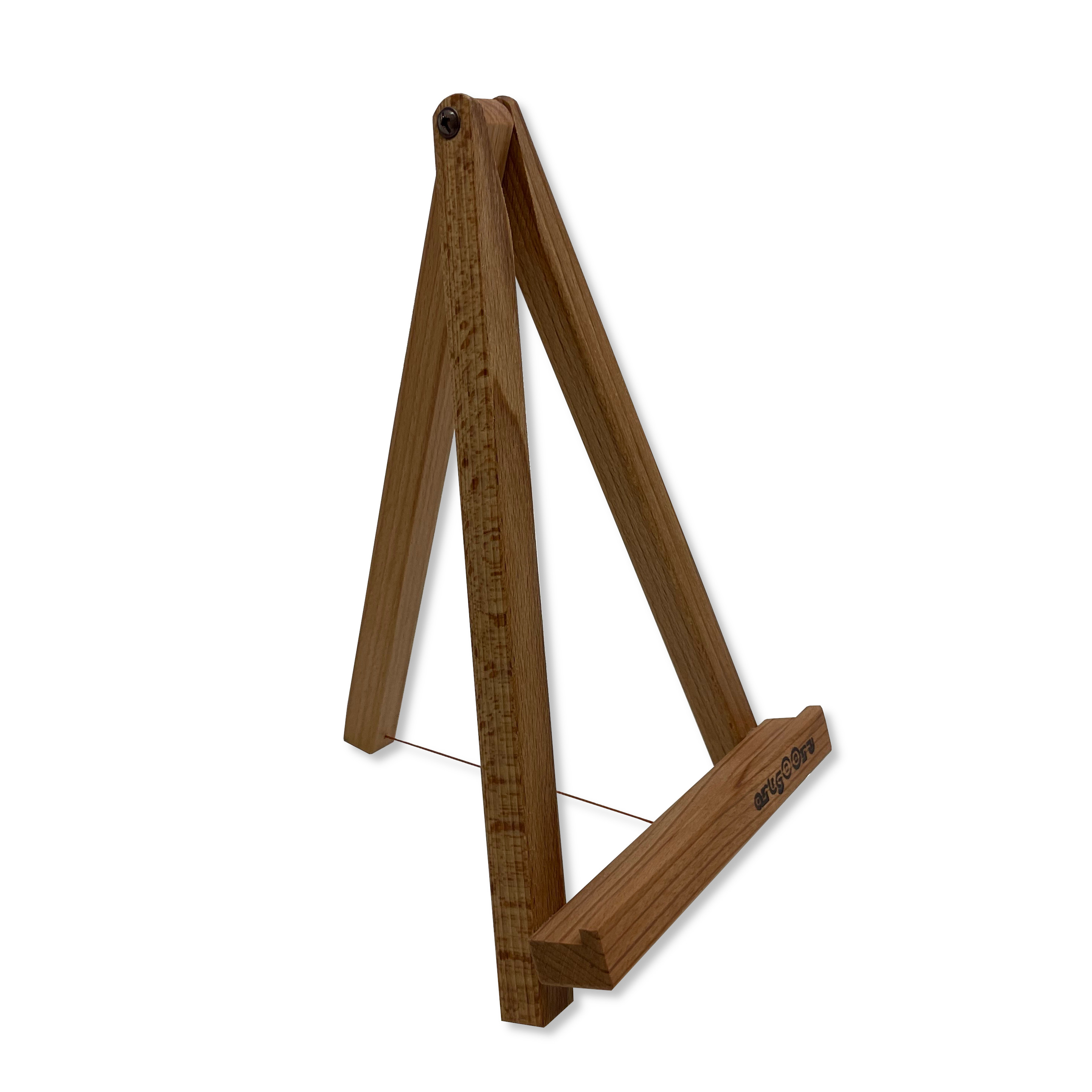 Мольберт настольный от бренда «Туюкан» сочетает в себе простоту и изящество. На данной модели можно расположить работы только малых форматов. Они ставятся на нижнюю полку мольберта и прислоняются к боковым ножкам. Фиксация работы сверху не предусмотрена. Такие мольберты можно использовать как для работы, так и демонстрации работ или фотографий или в качестве предмета интерьера.