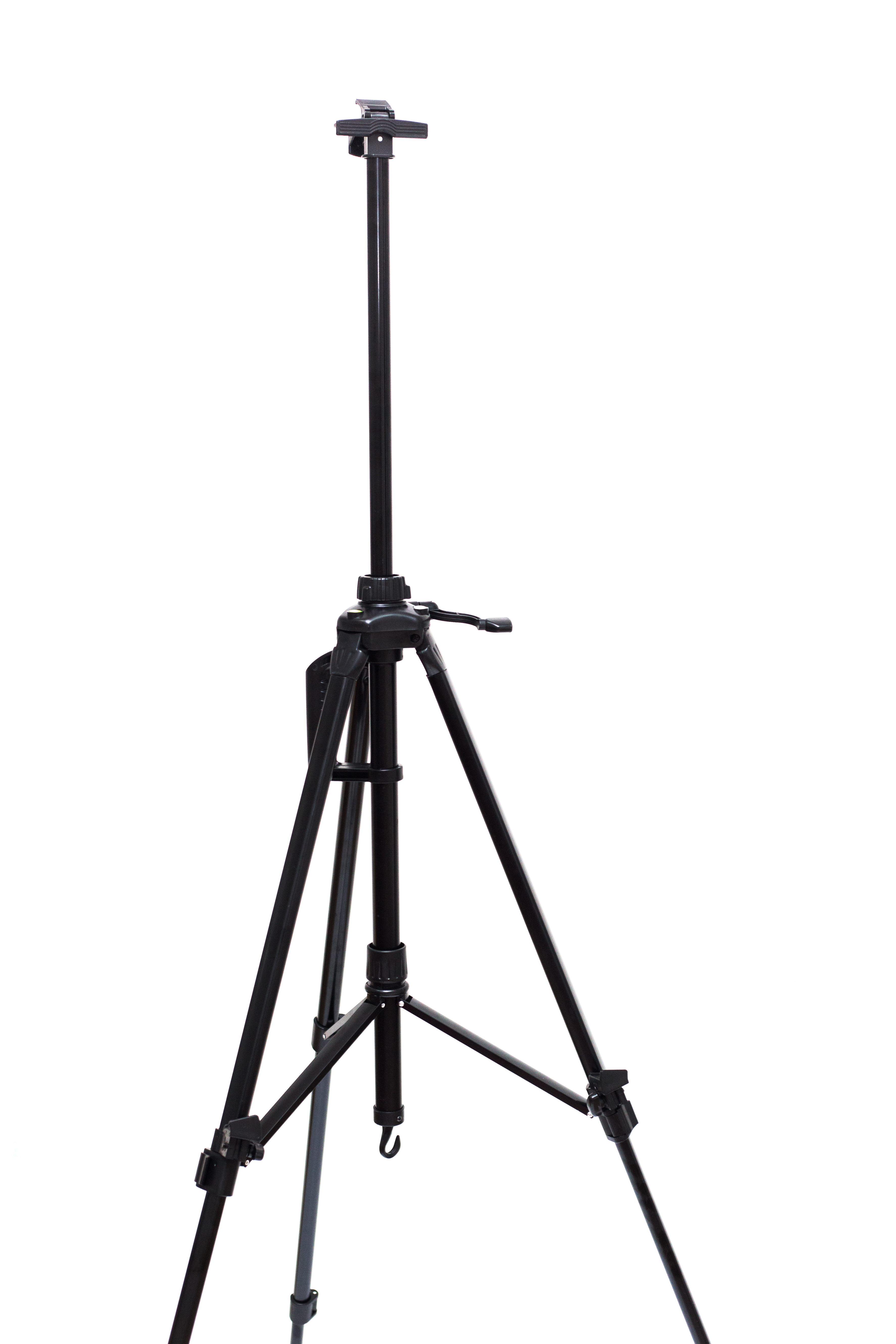 Алюминиевая тренога с регулируемой полкой для холста. Складной мольберт можно использовать как дома, так и на пленэре. Классическая конструкция мольберта позволяет регулировать высоту ножек при помощи зажимов. Центральная ось мольберта оснащена крючком, на который вы можете повесить сумку или ёмкость с водой, что так же добавит устойчивости всей конструкции. Цвет черный. В комплект входит чехол. Высота 155 см., максимальная высота холста 81 см. Вес 1,2 кг.