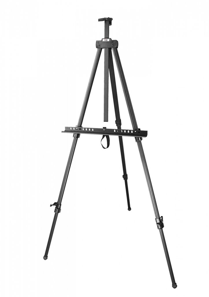 Лёгкий, но прочный профессиональный мольберт для больших форматов. Подходит для плэнера и демонстрационных целей. Телескопические ножки легко раскладываются, оснащены усиленными фиксаторами, пластиковые опоры обеспечивают устойчивость даже на неровной поверхности. Чехол для бережного хранения и удобной транспортировки — в комплекте. Размер: 140x100x132 (178) см.,