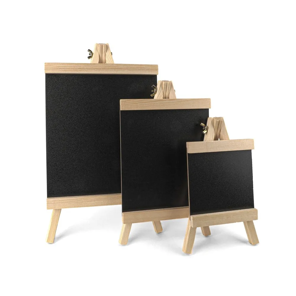 Небольшой деревянный мольберт «Малевичъ» хорошо обработан, устойчив и может использоваться как подставка для телефона или визиток, создания меловых рисунков, заметок и ценников. Такой мольберт станет милым украшением стойки регистрации, праздничного стола или отличным подарком. Мини-мольберт с доской для рисования мелом можно использовать не только как предмет интерьера, но и как рабочий инструмент для небольших картин и миниатюр, когда нет возможности установить маленький холст или бумагу на большой мольберт художника. Мольберты представлены в трёх разных размерах.