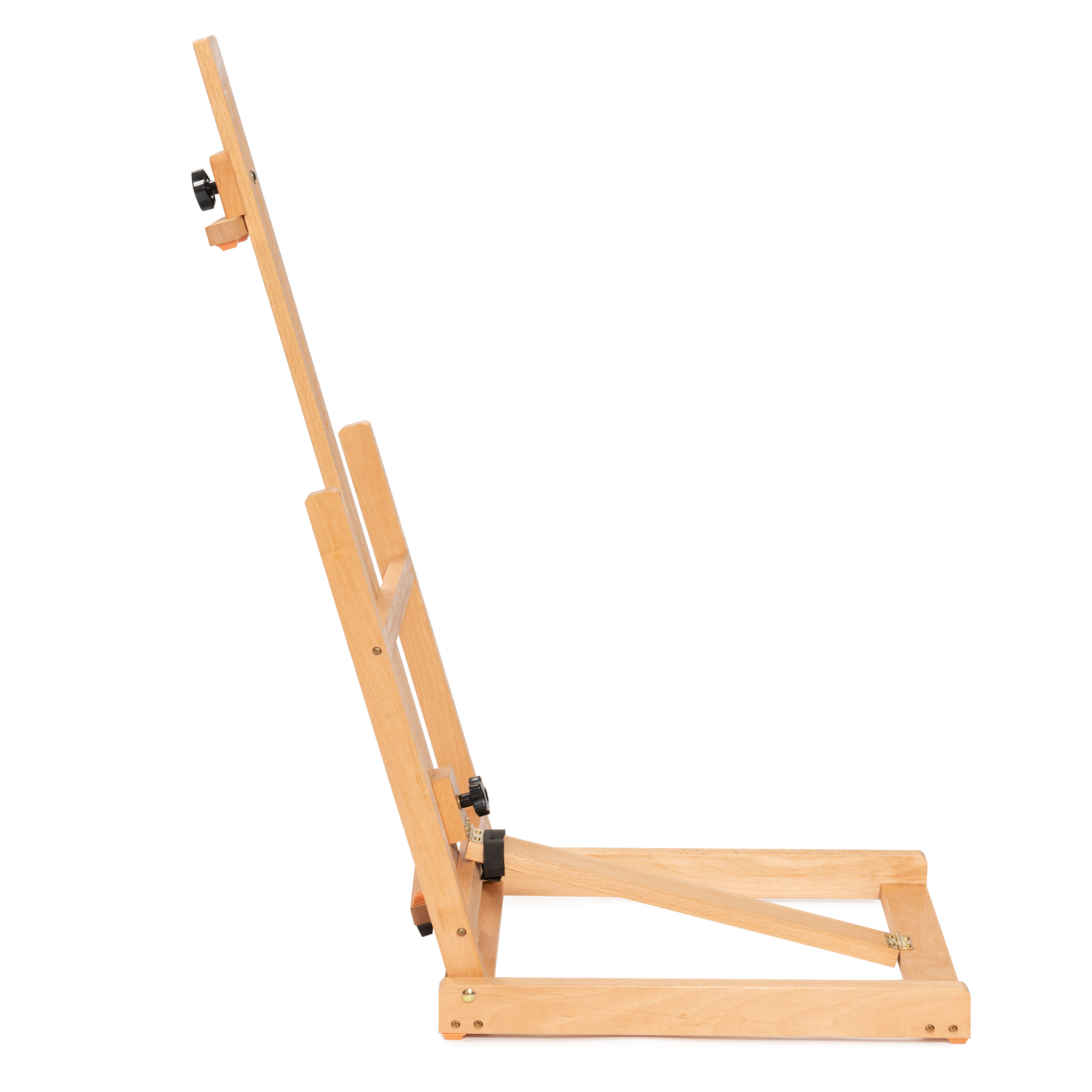 Самый крупный из всех настольных мольбертов бренда Pinax, вмещает в себя хост размером до 72 см. Подходит для студий и домашнего использования, имеет устойчивое основание и резиновые фиксаторы для холста - они дополнительно фиксируют холст от смещения при работе, а также предотвращают попадание краски на полку при работе на краях. Угол наклона холста регулируется и может отклоняться на пользователя (отрицательный угол наклона). Компактно складывается для хранения. Максимальная высота холста 72 см. Вес: 3,3 кг.