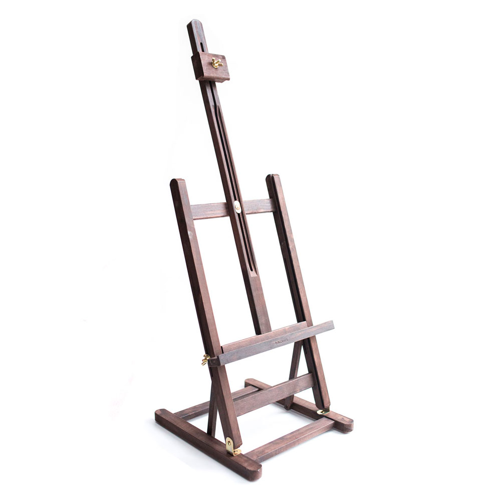 Настольный мольберт классической конструкции. Выполнен из сосны с декоративным покрытием "Винтаж". Нижняя полка и верхний бегунок регулируются по высоте. Угол наклона мольберта можно изменять. Технические характеристики: Максимальная высота холста 63 см. Основание: ширина 27,5 см, длина 32 см. Высота от 80 до 102 см. Вес 1,4 кг.