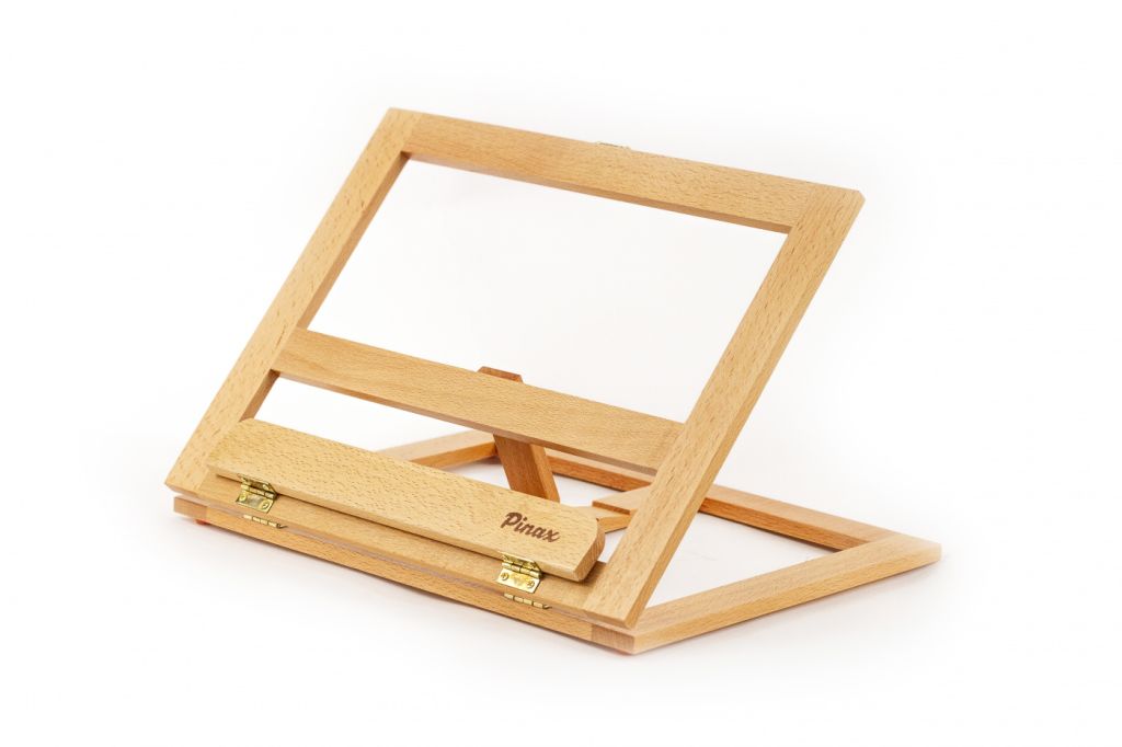 Деревянный настольный мольберт для рисования прекрасная альтернатива большим студийным мольбертам для работы с небольшими холстами на подрамнике или картоне, создания миниатюр и для рисования картин по номерам, демонстрационных целей. Мольберт настольный изготовлен из высококачественного бука, покрыт лаком, который сохраняет свойства плотной древесины устойчивой к влажности. Угол наклона мольберта меняется с помощь многоступенчатой гребёнки. Максимальная высота холста 30 см. Вес всего 750 гр., поэтому мольберт идеально подходит в качестве детского мольберта, также складной мольберт удобно брать с собой в дорогу. Мольберт настольный подходит как для профессиональных художников, так и для любителей живописи. Складной мольберт также можно использовать как подставку для книги, планшета, нот, фотографии. Такой мольберт идеально подходит для рисования акриловыми и масляными красками, акварелью и гуашью, пастели. При желании рамку можно окрасить в любой цвет, чтобы он лучше вписывался в интерьер. Габариты 33,5х26х23 см.