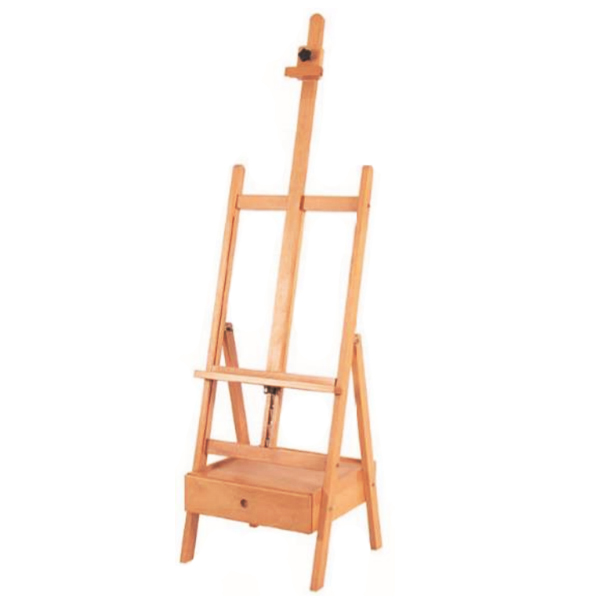 Студийный мольберт с ящиками для красок, кистей и других художественных принадлежностей. Компактное основание 48х48 см. позволяет разместить его даже в условиях ограниченного пространства. Полка для холста регулируется по высоте и фиксируется надежным зубчато-реечным механизмом. Максимальная высота размещаемого холста 107 см., что достаточно для большинства размеров основ для живописи. Технические характеристики: Размер основания: 48х48 см. Диапазон высот: 162-218 см. Максимальная высота холста: 107 см. Материал: промасленный бук Вес брутто: 7,2 кг.