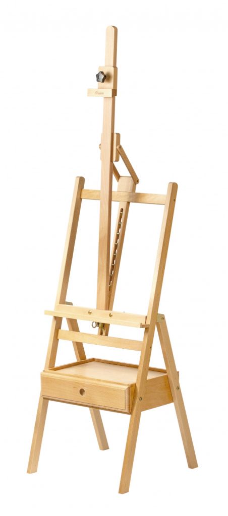 Самая продвинутая модификация в семействе компактных студийных мольбертов Pinax дополнительно оборудована мачтой с изменяемым углом наклона. Конструкция позволяет отклонить мачту в направлении художника на 8 градусов, это может быть необходимо как для комфортной работы (например, для защиты от бликов), так и для защиты художественного полотна от оседания пыли в перерывах между работой. Мольберт изготовлен из европейского бука — прочного и долговечного материала, покрыт слоем защитного лака и легко очищается от краски. Вместительный ящик для хранения материалов послужит также удобной полкой. Максимальная высота холста составляет 90 см. Мольберт SE-02A концентрирует в себе качества студийных мольбертов в компактном исполнении, что позволяет считать его лучшим решением для домашнего использования, если вы требуете от мольберта возможности, присущие профессиональным моделям. Технические характеристики: Размер основания: 44х44 см. Максимальная высота: 195 см. Максимальная высота холста: 90 см. Вес: 6 кг.