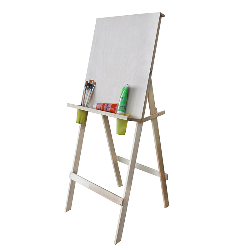 О модели: мольберты типа Хлопушка имеют четыре точки опоры и рабочую поверхность в виде планшета. Отсутствуют мачта и фиксаторы холста. Данная модель оборудована широкой полкой со стаканами. Характеристика: каркас мольберта изготовлен из тщательно подобранной древесины хвойных пород. На данной модели предусмотрена рабочая поверхность в виде фанерного планшета из березового пиломатериала. На модели предусмотрена широкая полка со стаканчиками для удобства работы и хранения инструментов. Размер рабочей поверхности 60*70 сантиметров. Высота мольберта 152 сантиметра, а ширина 55 сантиметров. Мольберт не занимает много места. Применение: рекомендуется для использования в художественных школах и детских студиях. Бумага или картон закрепляется на мольберте кнопками. Производство: производится в московской области фирмой Туюкан.