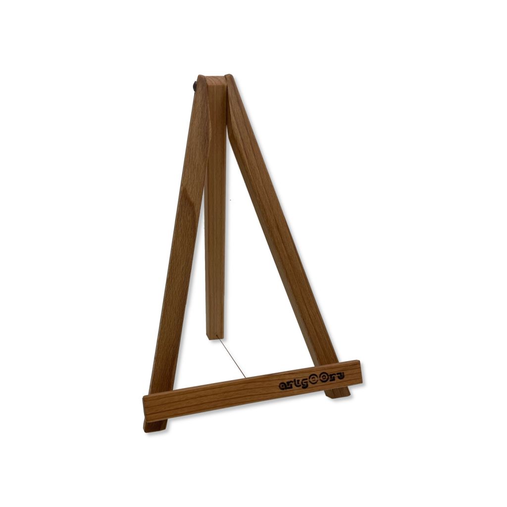 Мольберт настольный от бренда «Туюкан» сочетает в себе простоту и изящество. На данной модели можно расположить работы только малых форматов. Они ставятся на нижнюю полку мольберта и прислоняются к боковым ножкам. Фиксация работы сверху не предусмотрена. Такие мольберты можно использовать как для работы, так и демонстрации работ или фотографий или в качестве предмета интерьера.