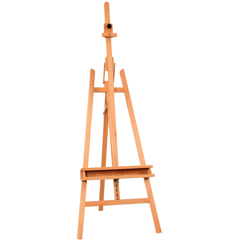 Мольберт "Лира" с механизмом плавного опускания позволяет менять положение работы одним движением, не снимая холст с мольберта. Наклонная штанга имеет "отрицательный угол" - возможность опустить работу на себя до 15 градусов для прорисовки мелких деталей и защиты свежей картины от пыли. Максимальная высота мольберта - 225 см, максимальный размер холста для работы - 123 см. Оснащен двойной широкой полкой для хранения кистей. Верхний держатель надежно фиксирует холст. Материал - натуральный бук, лакированный. Идеально подойдет начинающим и профессиональным художникам. Поставляется в разборе, в комплекте инструкция по сборке.