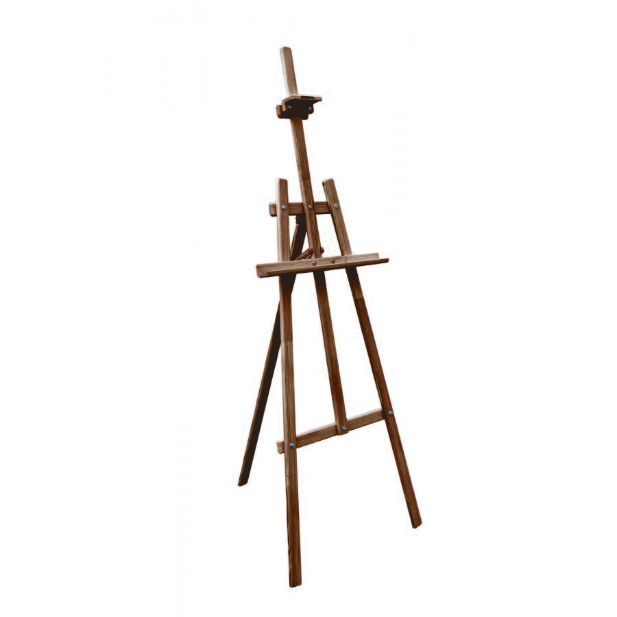 Мольберт Лира классической конструкции из натурального дерева. Угол наклона опорной ноги можно изменять, высота полки и фиксатора холста также регулируется. Бюджетный и практичный вариант мольберта для дома или студии. Покрыт морилкой коричневого цвета. Высота 170 см, ширина 55 см, глубина от 7 до 120 см. Вес 2,8 кг. Ширина полки 55 см, глубина полки 3,5 см. Максимальная высота холста 120 см.