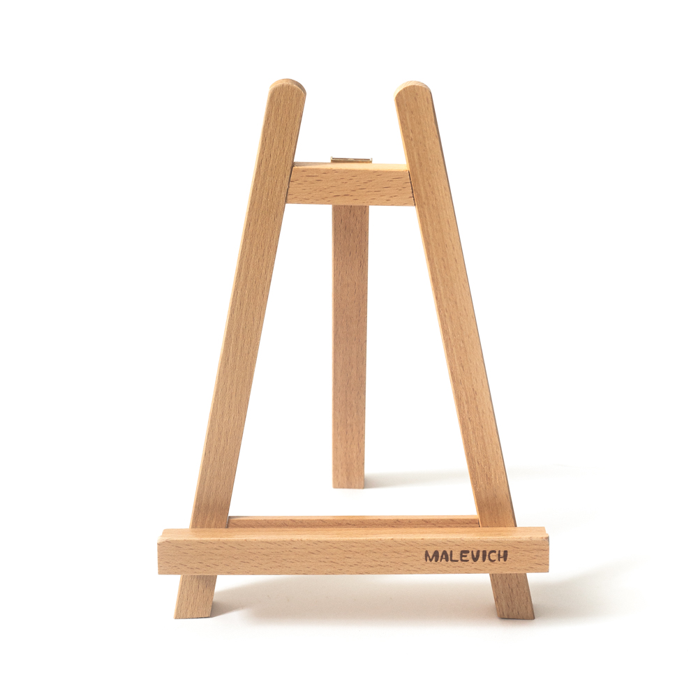 Простая классическая форма настольного мольберта предназначена для небольших работ. Уровень наклона регулируется с помощью задней штанги с фиксатором. Мольберт также может использоваться в качестве декоративной подставки под фото или картину. Мольберт выполнен из бука и покрыт лаком. Ширина 19 см, глубина 16,5 см, высота 26 см.