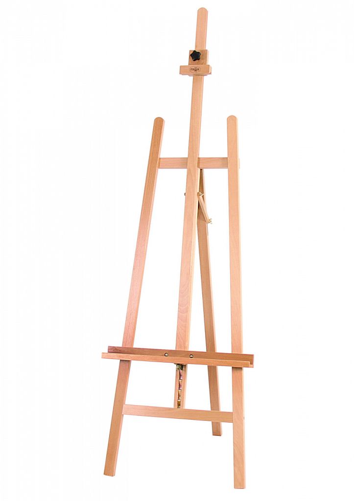 Модель мольберта для живописи в студии и дома, можно использовать для выставочных целей. Традиционный А-силуэт позволяет надёжно закрепить холст или планшет верхним фиксатором. Подъёмная мачта, плавная регулировка угла наклона мольберта. Можно подобрать комфортный уровень нижней полки для любого роста, работать сидя и стоя. Складывается, не занимает много места. Размер: 54x82x159 (224) см.