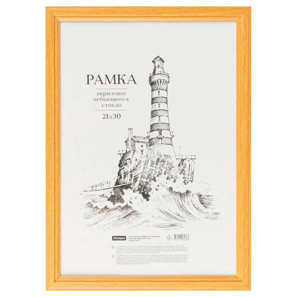 Рамка деревянная (МДФ) OfficeSpace 21*30 см, №1, акриловое небьющееся стекло, янтарь