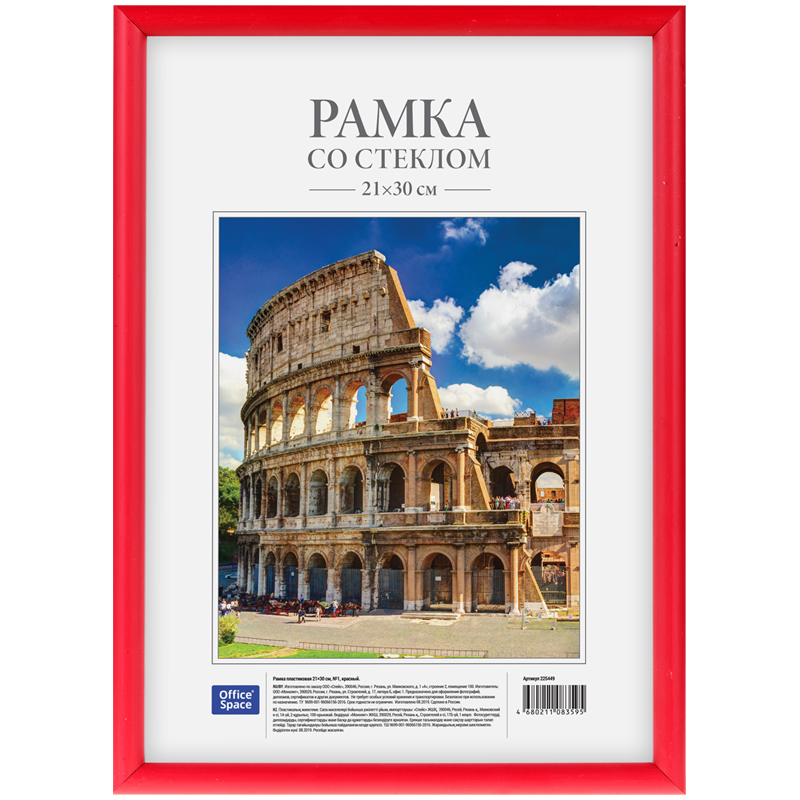 Рамка для фотографий, дипломов, сертификатов, грамот, лицензий и других документов формата А4, цвет красный. Возможность вертикального и горизонтального подвеса. Внимание! Полутон рамки может немного отличаться от представленного на фотографии.