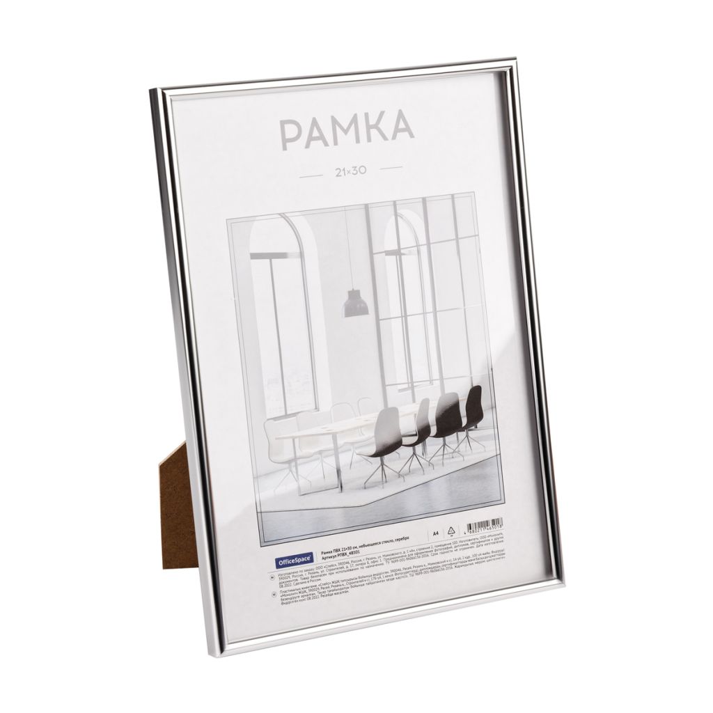 Рамка OfficeSpace подчеркнет стиль интерьера и сохранит важные моменты. Подходит как для вертикального, так и для горизонтального использования. Рамка размером 21*30 см изготовлена из серебристого ПВХ. Оборотная сторона изготовлена из оргалита, усиленная фурнитура, небьющееся стекло. Предусмотрена ножка для использования на горизонтальных поверхностях.