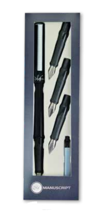 В набор Manuscript Classic Calligraphy входят самые необходимые инструменты для профессионального искусства красивого письма - держатель для перьев, 3 сменных пера и конвертер для заправки чернилами. Такой набор прекрасно подойдет для повседневного использования начинающих и опытных каллиграфоф.