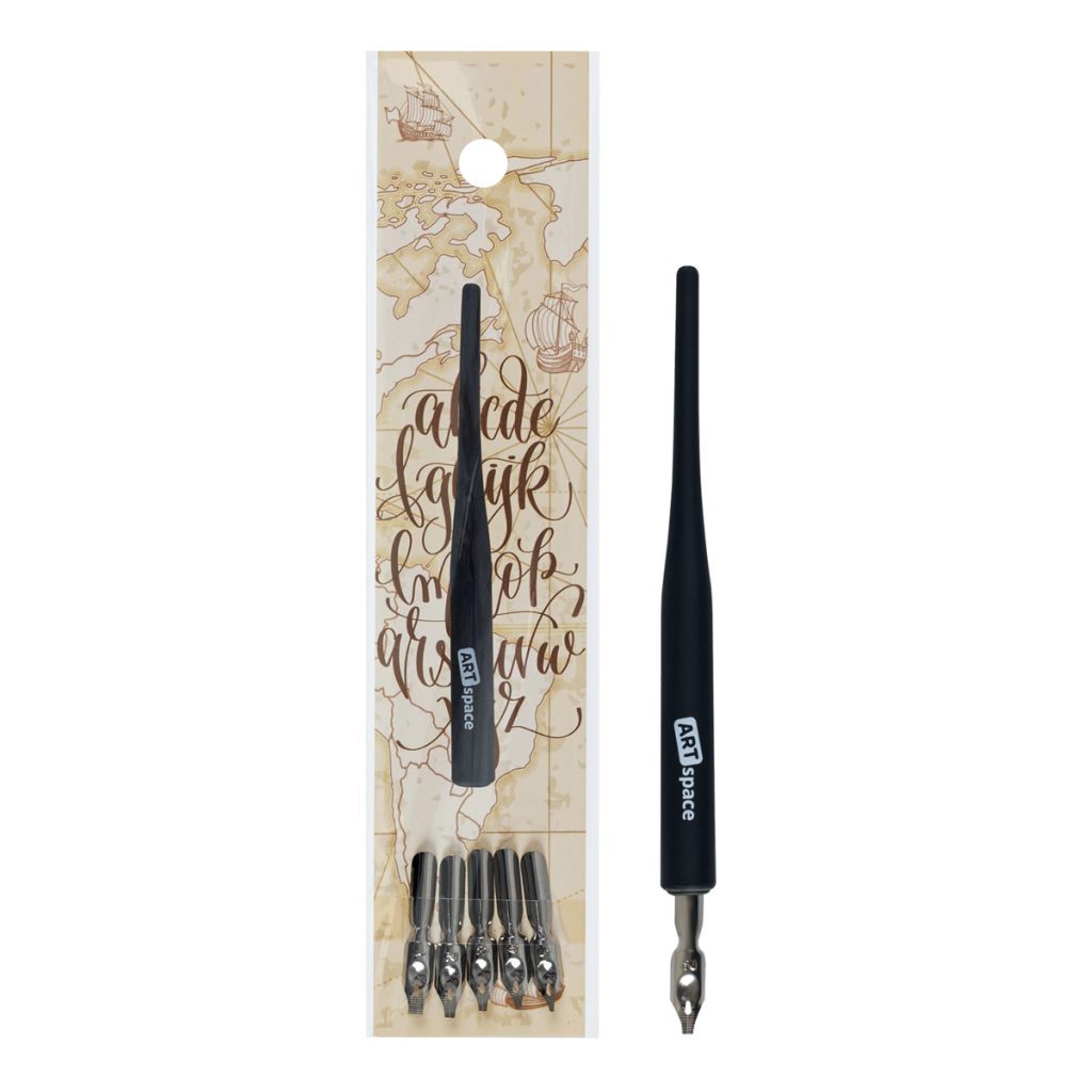Набор плакатных (постерных) классических европейских каллиграфических перьев ArtSpace с держателем идеально подходит для оформительских работ, написания текстов крупным шрифтом и рисования. В наборе 5 стальных перьев разных размеров: № 1 – 3 мм, № 2 – 2,3 мм, № 3 – 1,5 мм, № 4 – 1 мм., № 5 – 0,65 мм. Перья позволяют наносить линии разной толщины и нажима. В наборе удобный чёрный пластиковый эргономичный держатель с soft-touch-покрытием. Плакатные перья ArtSpace – это профессиональное качество художественных материалов по доступной цене.