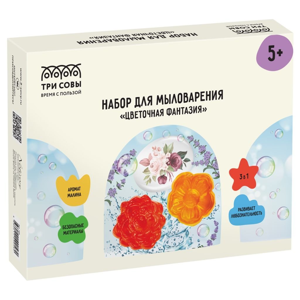 Мыловарение – это необыкновенное занятие, которое подарит положительные эмоции и поможет развить креативность, фантазию, мелкую моторику. С помощью набора «ТРИ СОВЫ» вы сможете создать яркое ароматное мыло с картинкой и объемное цветное мыло в домашних условиях. В комплект входят все необходимые компоненты и подробная инструкция. Уровень pH (кислотности) в готовом мыле при соблюдении указанных пропорций ингредиентов соответствует естественному уровню pH кожи, поэтому оно не будет сушить кожу при использовании. Мыло собственного производства принесёт положительные эмоции. Готовая продукция станет хорошим и необычным подарком. Состав набора: формочки для мыла из полиэтилена, мыльная основа, акварельная картинка на водорастворимой бумаге, ароматизатор, красители пищевые, перчатки целлофановые, палочка деревянная, пластиковый контейнер.