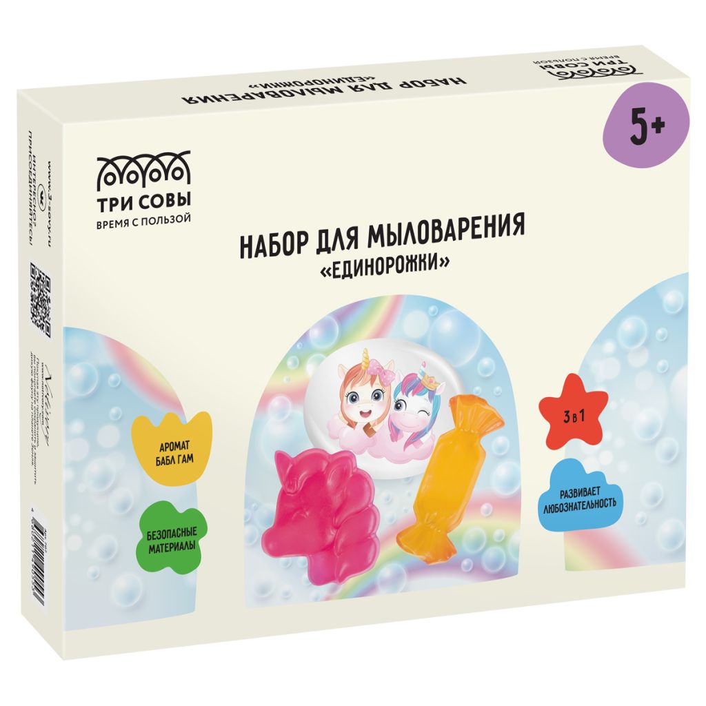 Мыловарение – это необыкновенное занятие, которое подарит положительные эмоции и поможет развить креативность, фантазию, мелкую моторику. С помощью набора «ТРИ СОВЫ» вы сможете создать яркое ароматное мыло с картинкой и объемное цветное мыло в домашних условиях. В комплект входят все необходимые компоненты и подробная инструкция. Уровень pH (кислотности) в готовом мыле при соблюдении указанных пропорций ингредиентов соответствует естественному уровню pH кожи, поэтому оно не будет сушить кожу при использовании. Мыло собственного производства принесёт положительные эмоции. Готовая продукция станет хорошим и необычным подарком. Состав набора: формочки для мыла из полиэтилена, мыльная основа, акварельная картинка на водорастворимой бумаге, ароматизатор, красители пищевые, перчатки целлофановые, палочка деревянная, пластиковый контейнер.