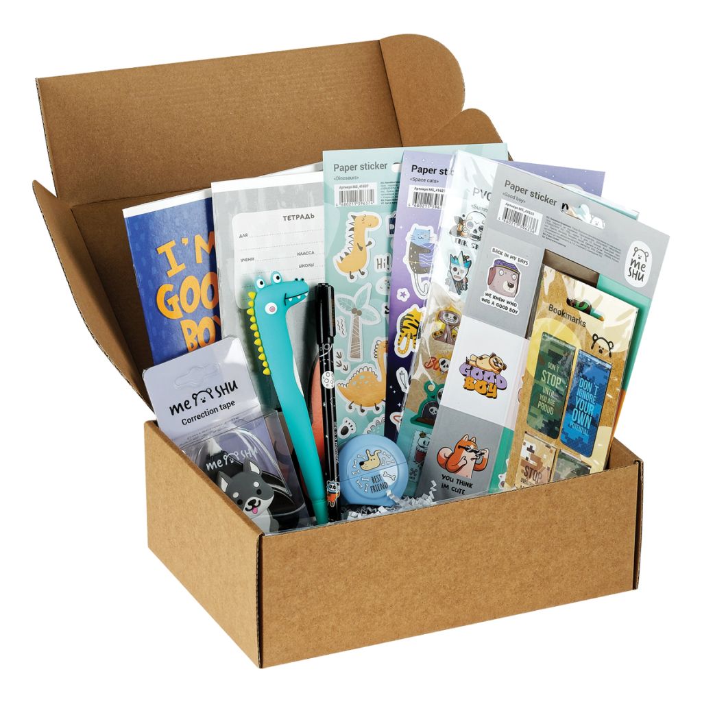 Набор канцелярских принадлежностей MESHU Best friend станет прекрасным подарком к любому празднику. Различные товары для школы и творчества, выполненные в стильных дизайнах MESHU, порадуют ваших близких и будут отличными помощниками в учебе или работе. Набор содержит 18 предметов: • бумажная наклейка 3 шт.; • ПВХ-наклейка 1 шт.; • магнитная закладка 1 шт.; • линейка 1 шт.; • карандаш ч/г 3 шт.; • тетрадь клетка 2 шт.; • ручка гелевая стираемая 1 шт.; • ручка шариковая с топером 1 шт.; • точилка 1 шт.; • корректирующая лента 1 шт.; • блок для записей 1 шт.; • флажки-закладки 1 шт.; • ластик 1 шт. Дизайны предметов в наборе могут варьироваться, но будут соответствовать заявленной теме набора.