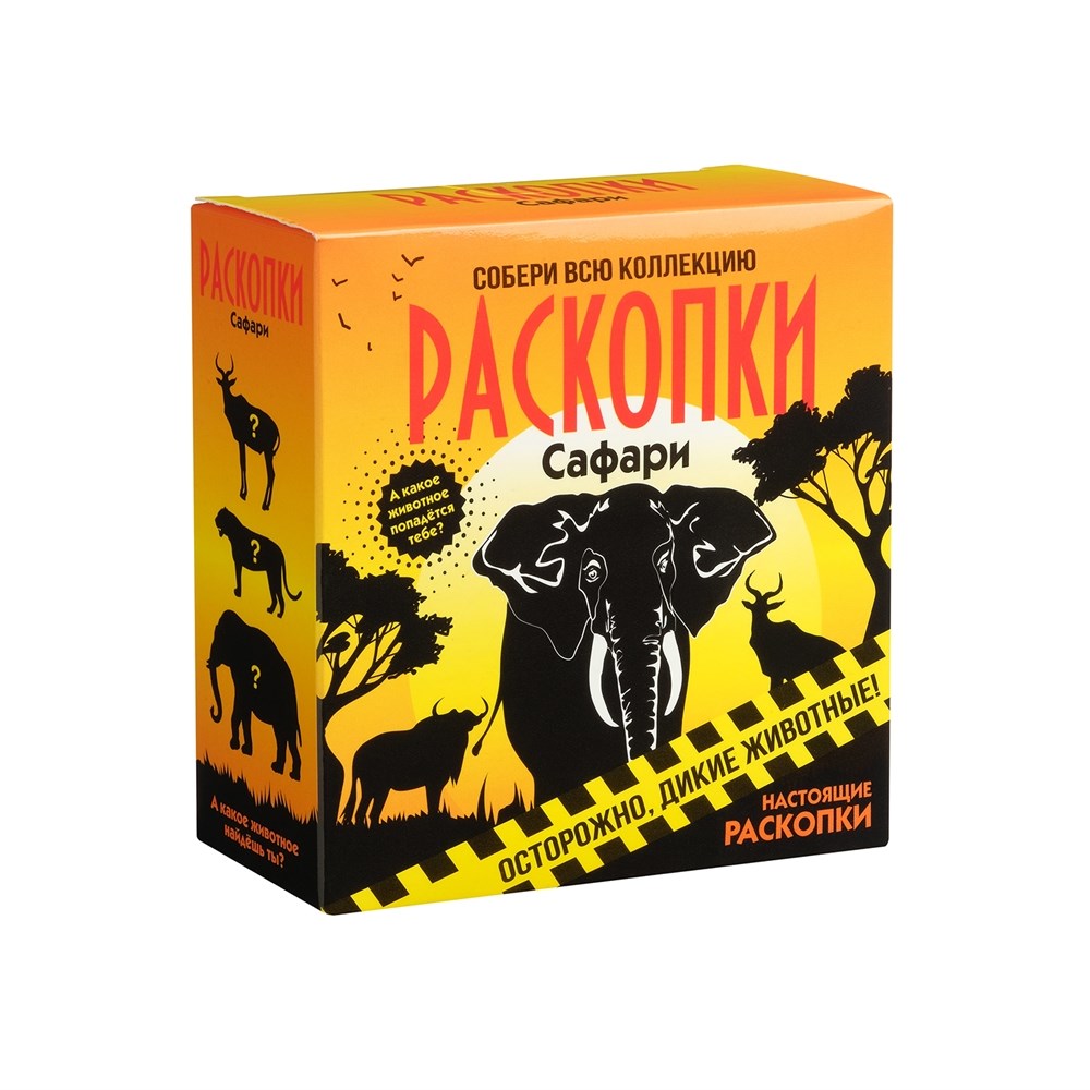 Отправляемся в археологическое сафари! В этих раскопках вы сможете найти различных диких животных. Доставайте инструменты и попробуйте отыскать находки: снимайте слой за слоем, пока не найдете жителей жарких мест Брусок в этих раскопках состоит из безопасного материала – гипса. Деревянная палочка достаточно острая.Чтобы было легче копать, можно смочить брусок водой. Вам также будут попадаться необычные камни – они наверняка очень древние! Может, вам повезёт и вы найдёте настоящего слона? Возраст: 6+ В наборе: деревянный стек для дробления, окаменелый грунт с находками. Цвета находок .