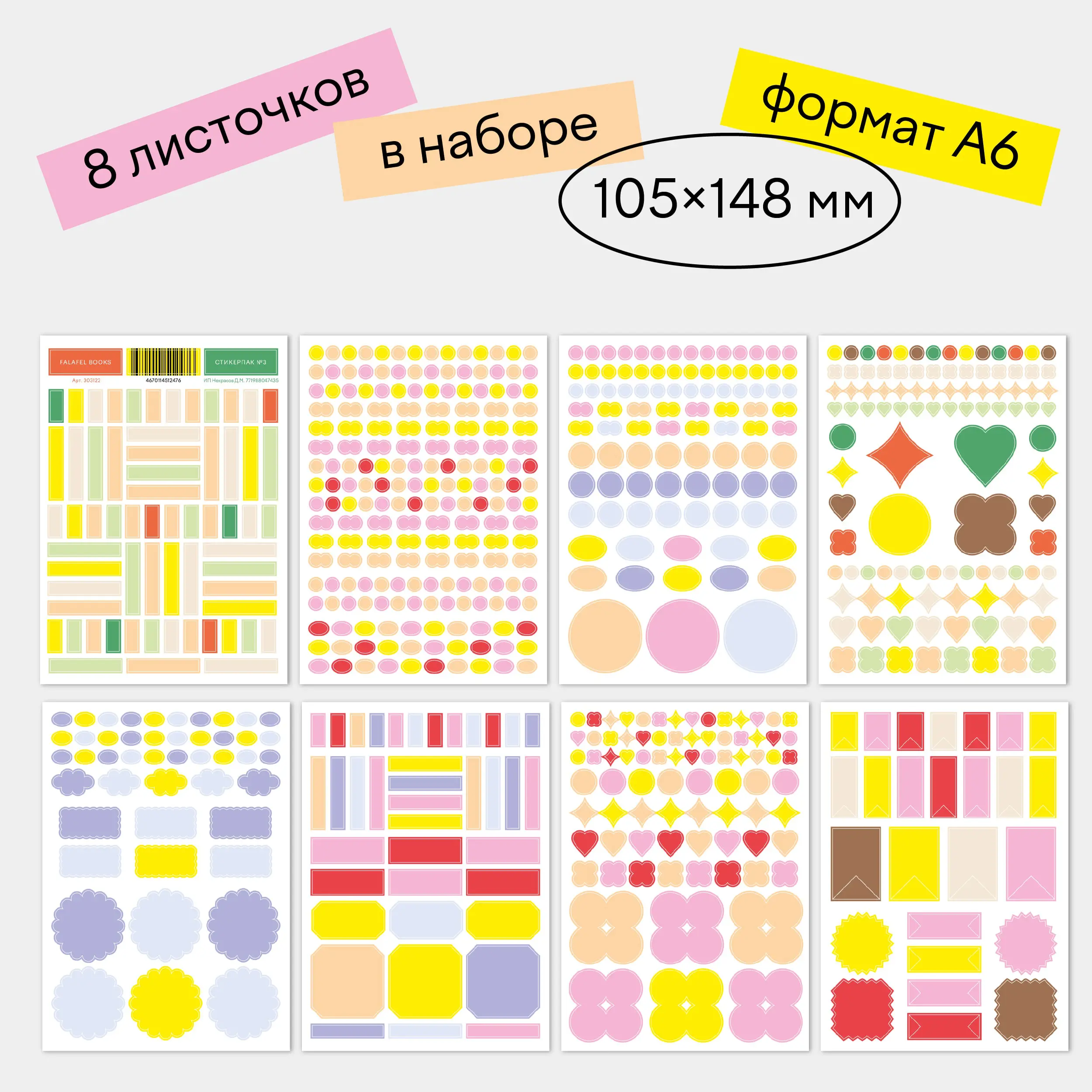 Стикерсет №3 вышел самым универсальным. Без лишних слов — только формы. Можно выделять главное и не отвлекаться на лишнее. Или использовать наклейки как подложку для заголовков страниц.
