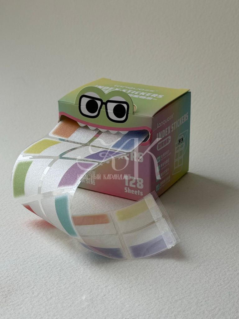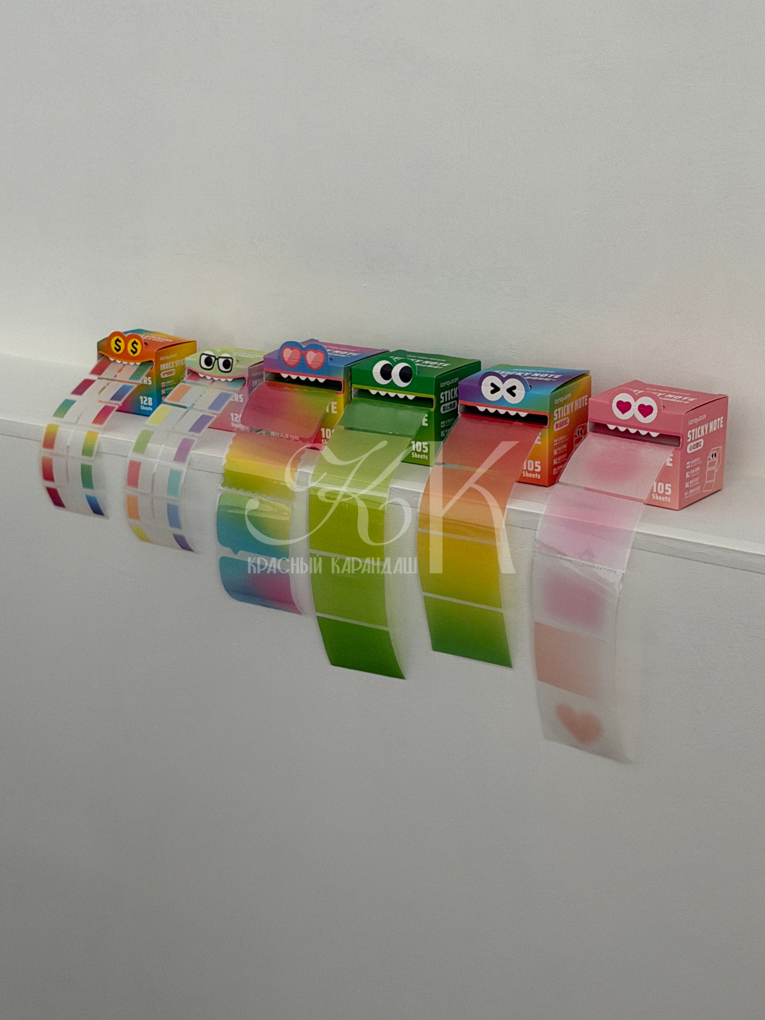 Блок Languo содержит 105 разноцветных прямоугольных липких листов для записей. Листы удобно смотаны в рулон и хранятся в картонной коробочке с милым дизайном.
