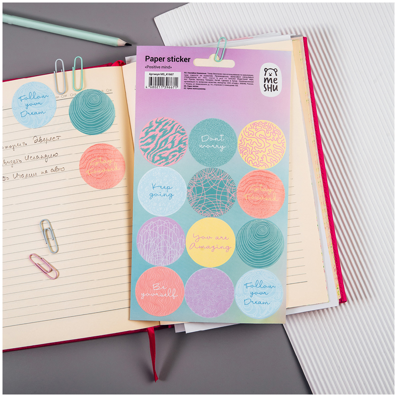 Бумажные наклейки MESHU Deer&bunny – отличный помощник в креативном оформлении записей в блокнотах и дневниках. Бумажные наклейки подойдут также для украшения канцтоваров, открыток, поделок, телефонов, ноутбуков, предметов интерьера. Яркие современные дизайны от MESHU сделают творческий процесс увлекательным и подарят отличное настроение. Наклейки упакованы в пакет с европодвесом.