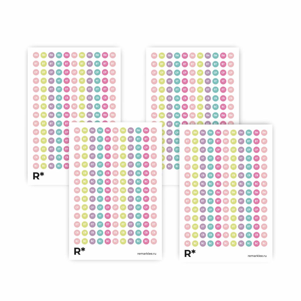 Набор содержит 4 стикера для оформления дней на 88 недель, то есть на 20 месяцев. Подойдет для тех, кто ценит красоту и хочет создать неповторимый стиль своих записей и планирования.